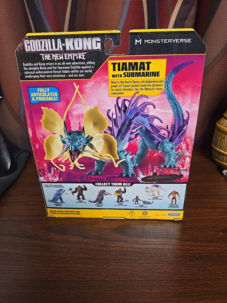 Dive into the epic battles of the monstrous kingdom with the Godzilla X Kong: The New Empire TIAMAT action figure by Playmates. This expertly crafted collectible, representing the mighty sea creature from the popular theme, is set to be a standout display piece or the centerpiece in your collection.Manufactured in 2024, this detailed figure comes complete with its own submarine accessory, allowing for imaginative play or exhibition. With its origins in China, the quality and authenticity of this Playmates production are a testament to the brand's commitment to fans and collectors alike.