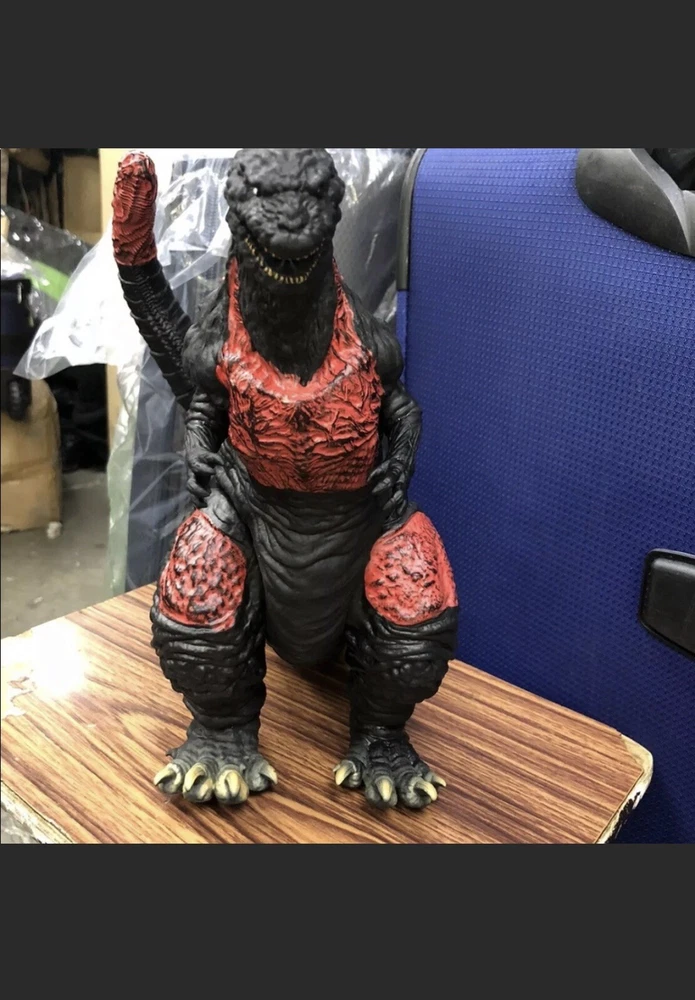 Godzilla jumbo size. Up for sale is Jumbo Godzilla. Item is rare and item is about 17 inches tall from tail to head. From its head to toe, it’s about 10 to 12 inches tall. On the foot of the item, it has the name of the maker, year and style number. Item is in great condition with minor flaws. Item is loose and does not come with its original box. This is a China version. All sales are final. *please know that this is a big size Godzilla. *please know that the flow is that the item have minor glue stain.
