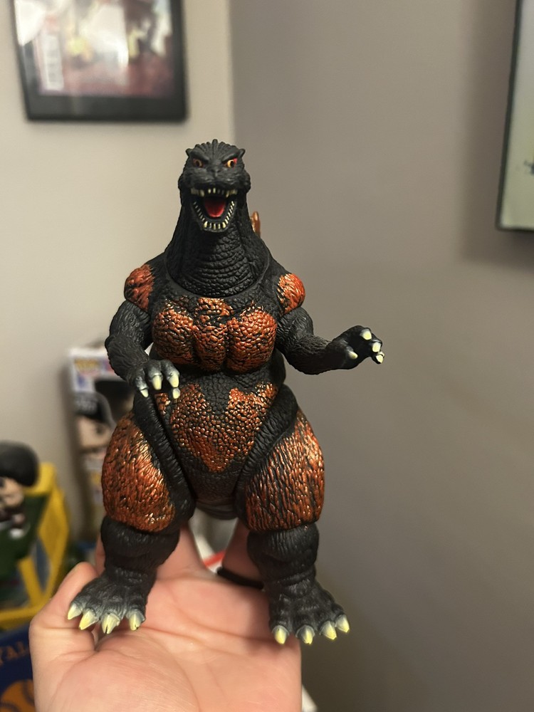 The product is a Godzilla vs. Destoroyah Movie Monster Series figure featuring Burning Godzilla. Used without a box or tag. Gently used for displaying.