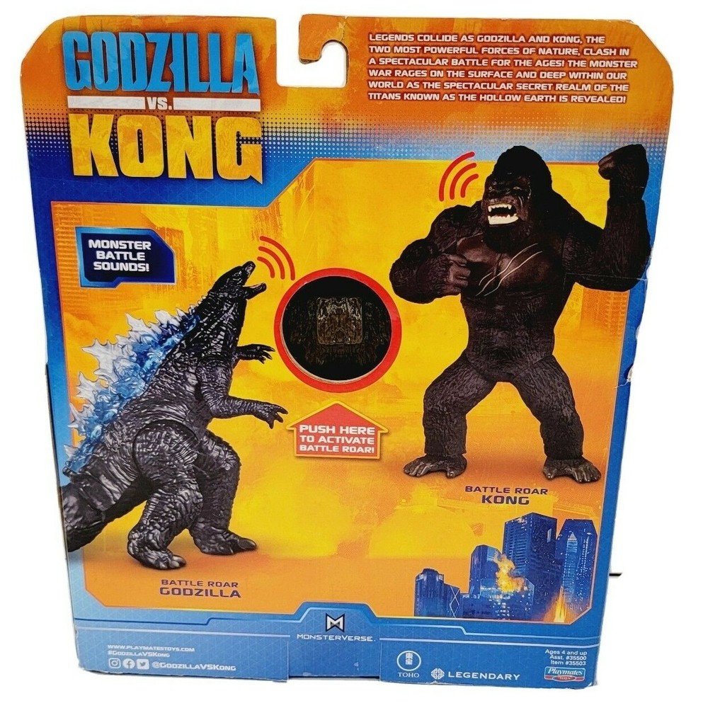 Godzilla vs Kong 7" Kong Battle Roar Action Figure - MonsterVerse Playmates Godzilla vs Kong Deluxe Battle Roar Kong Legends collide as Godzilla and Kong, the two most powerful forces of nature, clash in a spectacular battle for the ages! The monster war rages on the surface and deep within our world as the spectacular secret realm of the titans known as the Hollow Earth is revealed! Hear the mighty roar of Kong as he enters the ultimate battle royale against Godzilla!