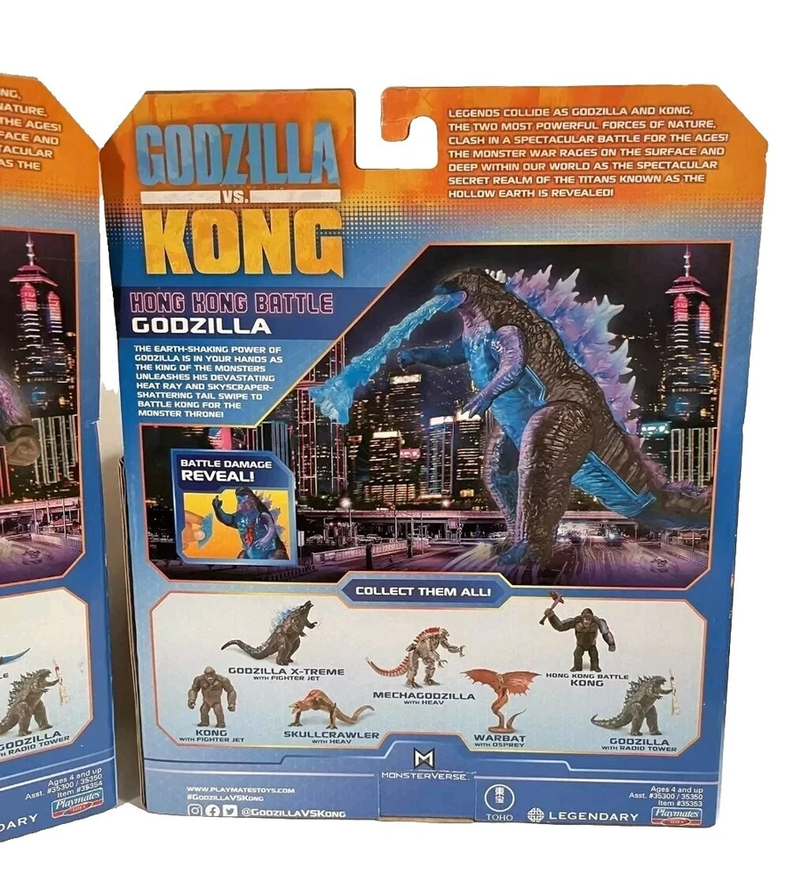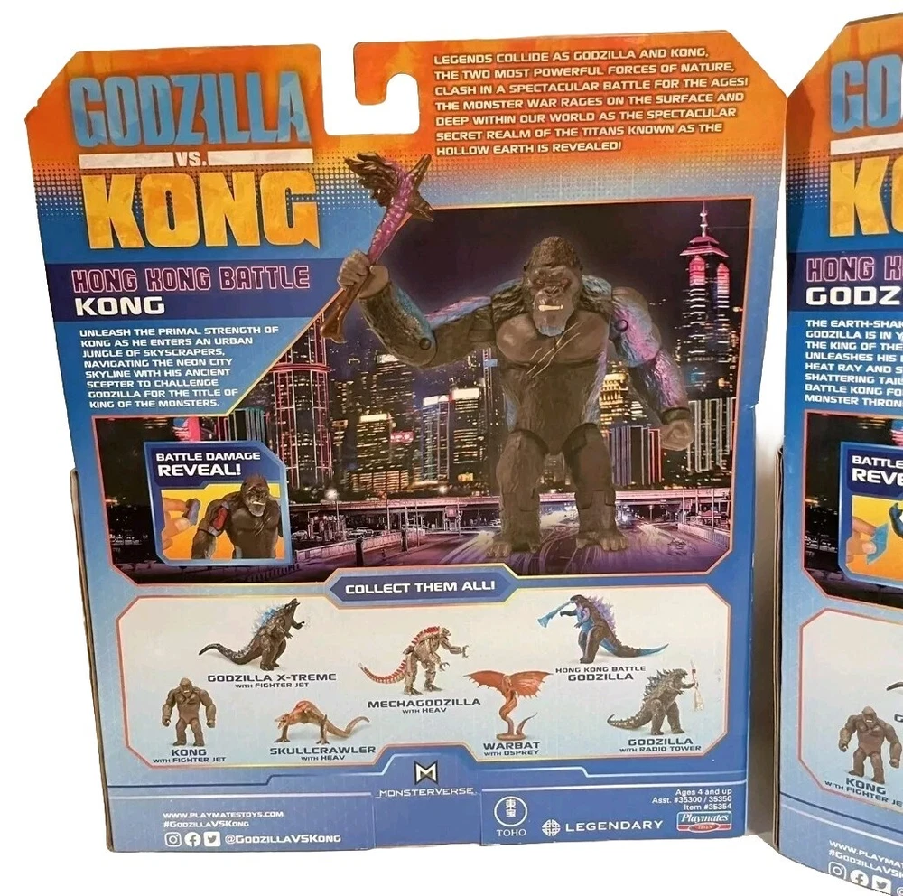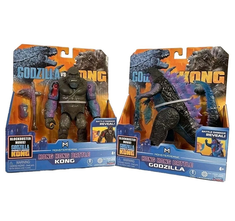 Godzilla vs Kong Hong Kong Battle Heat Ray and Battle Axe 6" Figure Lot NEW Set includes: One (1) - "Hong Kong Battle" Kong with Battle Axe action figure and One (1) - "Hong Kong Battle" Godzilla with Heat Ray action figure Both figures are brand new in original packaging Ships FAST and FREE via USPS Ground Advantage or UPS Ground depending on location!