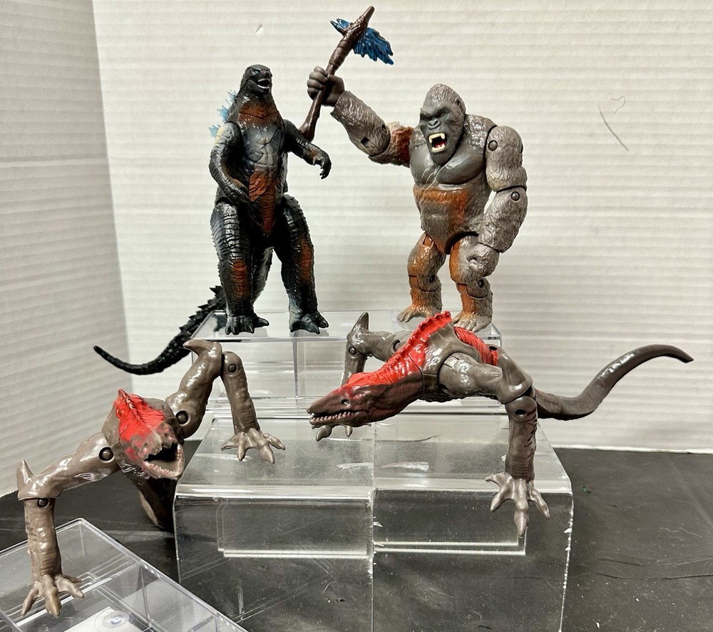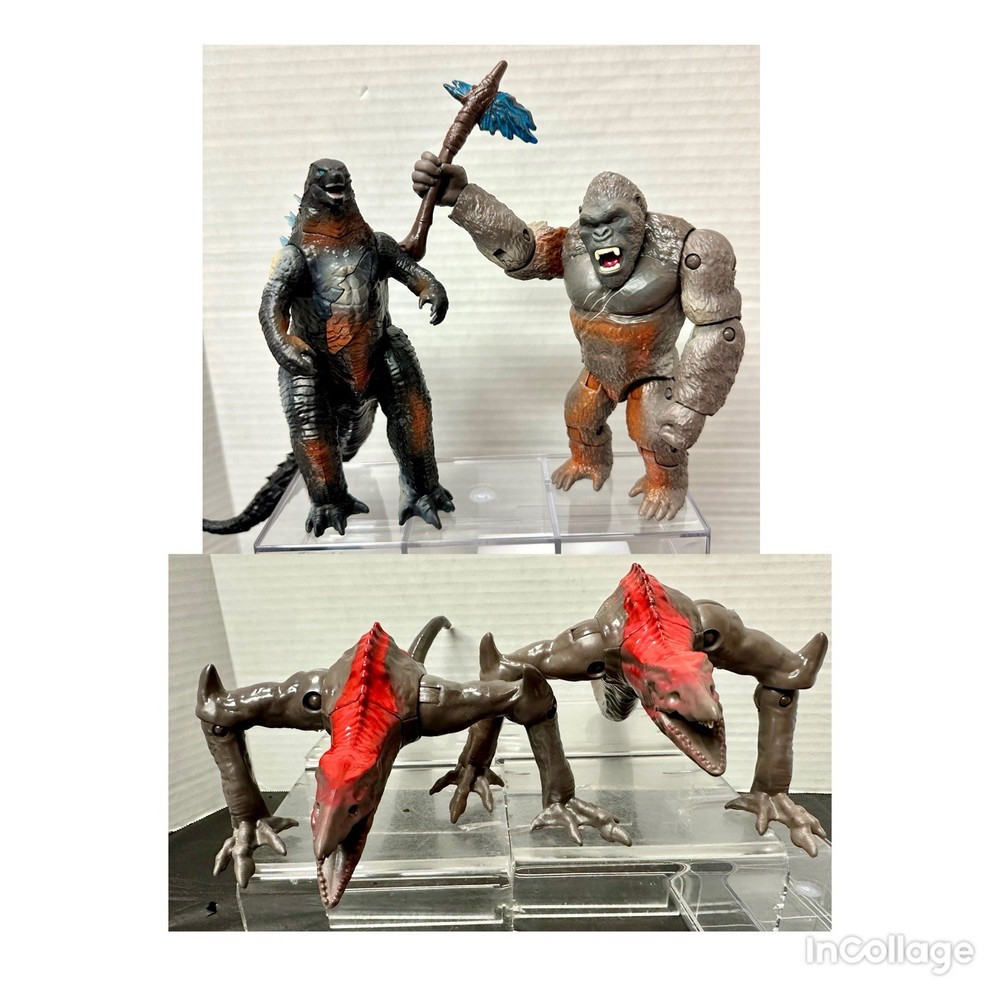 Godzilla vs Kong Monsterverse Godzilla Kong & Skull Crawlers Figures Lot Of 4 Battle Damaged. King Kong & the Skull Crawlers are missing their wound covers. The Skull Crawlers are not marked with a brand. See all pictures for condition. I always post plenty of pictures to help buyers use their own judgement on the condition of the item. Please make sure you will be happy with the item. If you have any questions please don't hesitate to ask me. I will ship the item in 1 business day. Please check out the other items I have for sale. Thanks for looking! (B977)