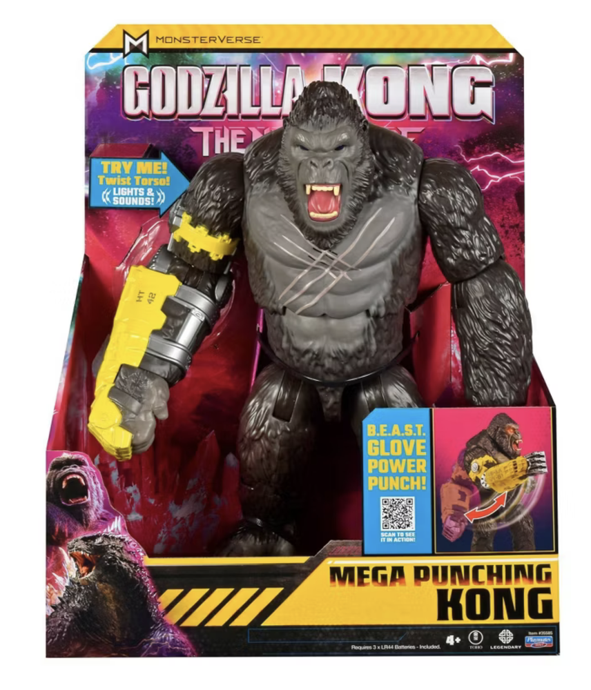 Return to Hollow Earth with Godzilla and Kong in an all-new adventure! When a colossal threat is discovered within our world, Godzilla and Kong must fight to protect their existence-and our own. Unleash the raw power of Kong with the Mega Punching Kong figure, ready to take on any challenge that comes his way! This colossal figure features Kong's B.E.A.S.T. Glove Power Punch, adding a whole new level of intensity to his battles. With just a twist, watch Kong deliver a powerful punch, complete with lights and sounds that make every impact feel real. Standing tall and fierce, this figure is the perfect addition to your Monsterverse collection, bringing the epic showdown of Godzilla and Kong right into your home. From pet and smoke fee environment New with box