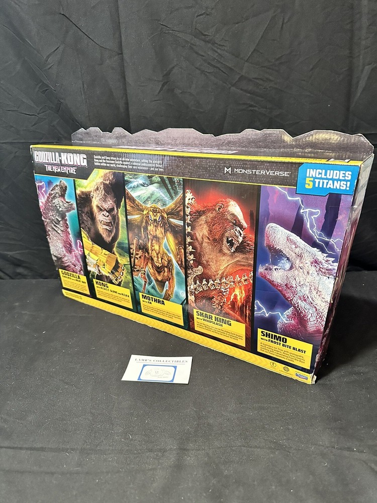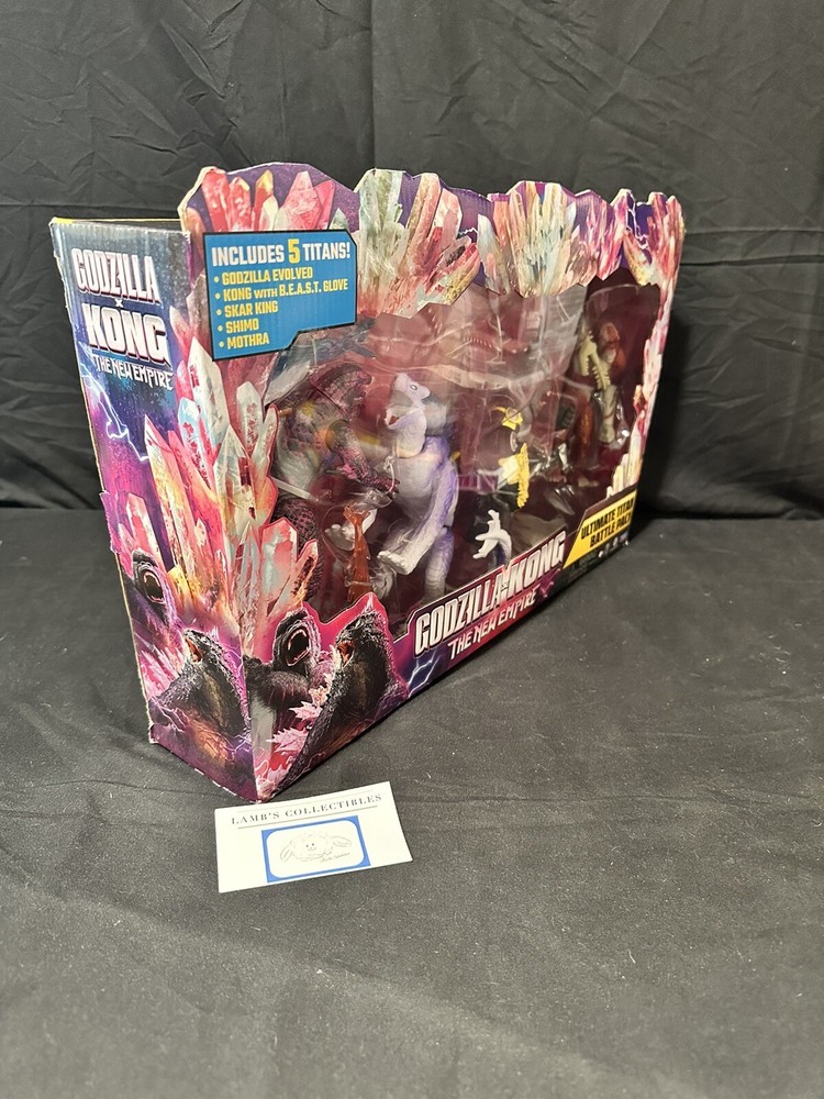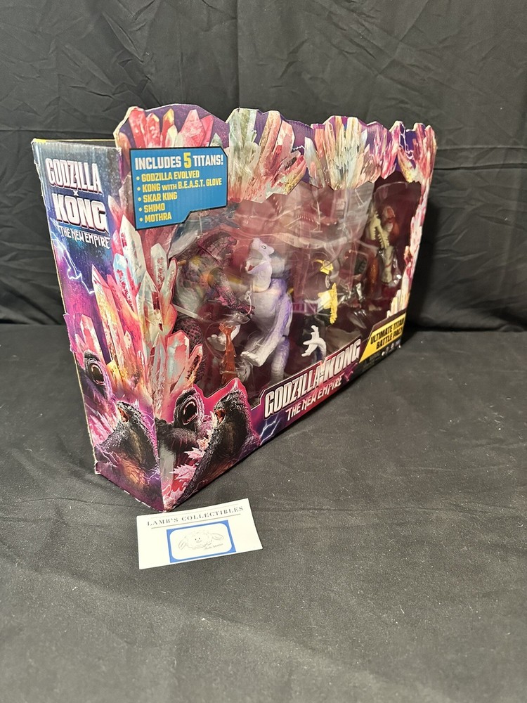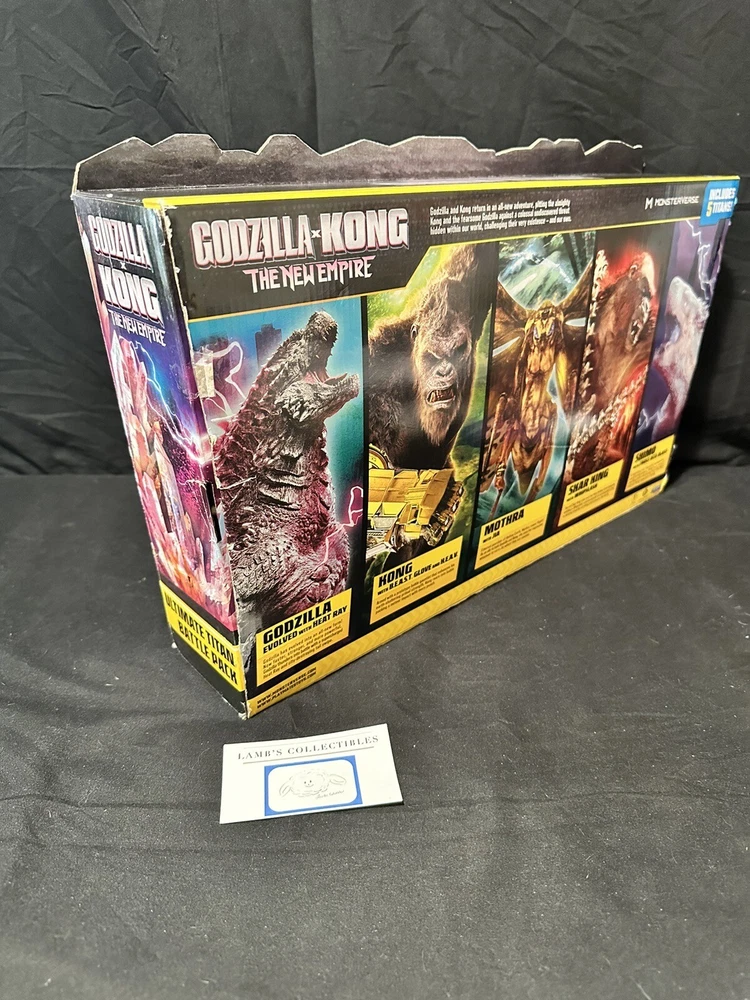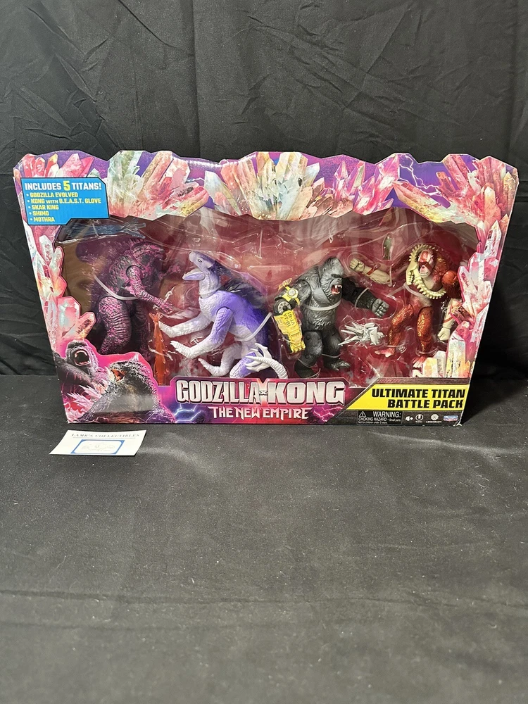 Godzilla x Kong New Empire Ultimate Titan Battle 5 Pack 6" action Figures toys includes: Godzilla Evolved with heat ray Sumo with frost bite blast Kong with B.E.A.S.T. Glove and H.E.A.V. Jia (1 inch figure) Skar King with whiplash some assembly required please note: the mothra figure in not included in this pack item is being sold in "AS-IS" condition NO returns will be accepted because of the missing figure or the box condiiton Please review all photos, policies & contact us with any questions. Thank You! Lamb’s Collectibles I nternational Buyers Import duties, taxes, & charges are not included in item price or shipping cost & are buyer's responsibility. Customers report packages arrive safely & quickly.