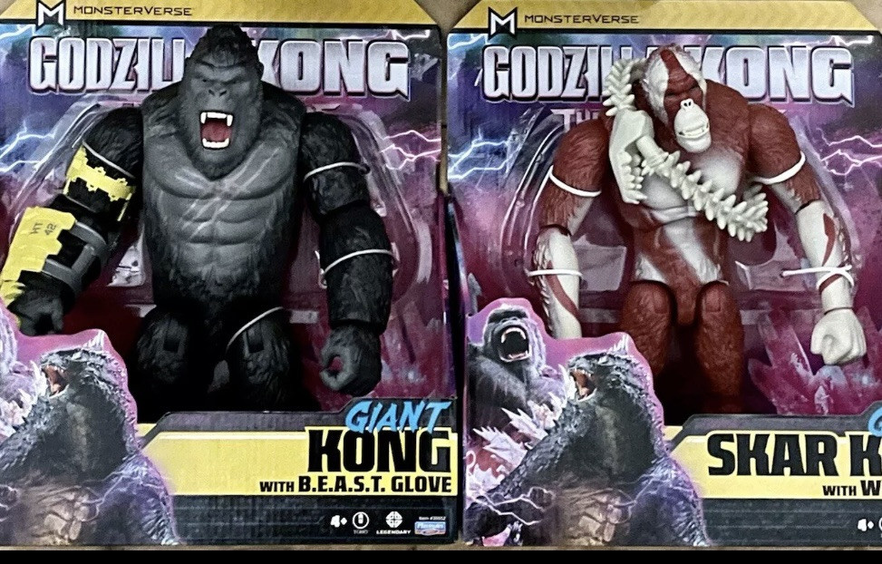 The "Godzilla x Kong The New Empire 2024 New Giant 11" Action Figure Toys Set Of 2" features characters Skar King and King Kong from the Godzilla franchise in a multicolor 11-inch scale. Produced by Toho and Legendary, it includes a Titan spine weapon and is made of plastic. The action figures are poseable, with movable arms, elbows, wrists, legs, knees, and head, embodying the Simian Titan and other iconic characters from the Godzilla x Kong Monsterverse series. This set captures the essence of the Godzilla x Kong movie with themed packaging, offering an exciting addition to any fan's collection.