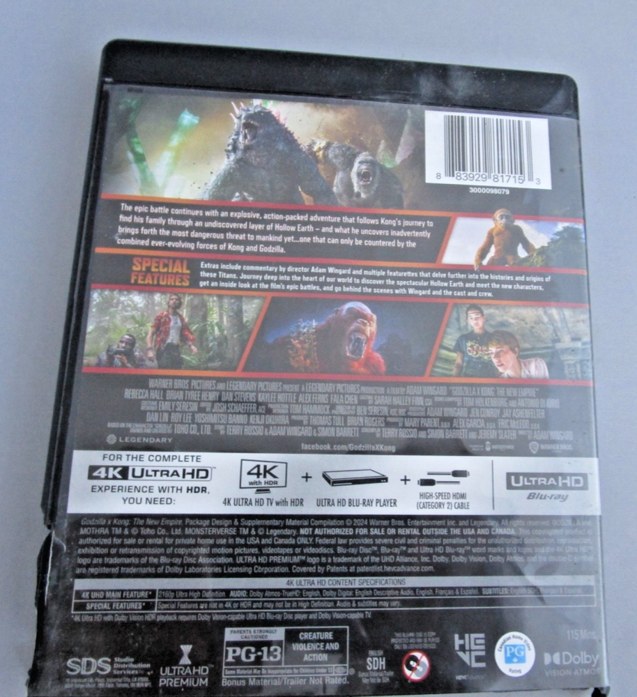 Godzilla x Kong The New Empire 4K UHD Blu-ray NEW SOME DAMAGE TO CASE