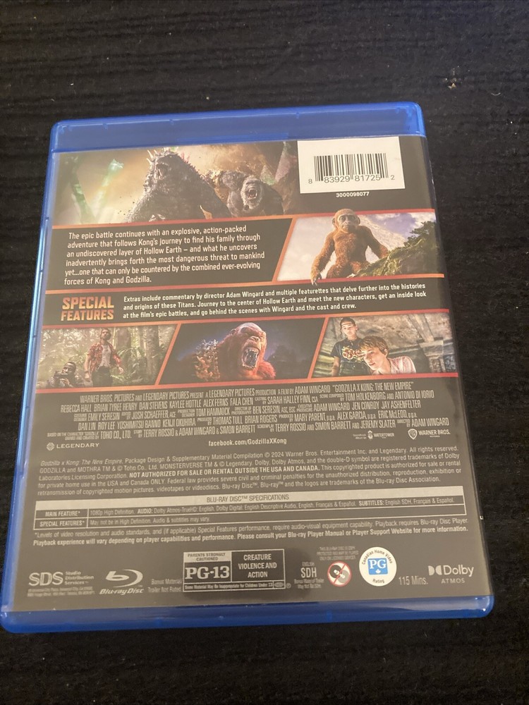 Get ready for an epic showdown between two legendary creatures in the action-packed science fiction film, Godzilla x Kong: The New Empire. This Blu-ray release features stunning visuals and thrilling performances by Brian Tyree Henry, Dan Stevens, Eiza González, and Kaylee H. The movie is set in the year 2024 and is rated PG13, making it suitable for a wide audience. The film is produced by Warner Home Video and is part of the Action/Adventure and Science Fiction genres. It comes with a region code of A and is a must-have for fans of the Godzilla and Kong franchises. Order your copy now and witness the battle of the century between these two iconic monsters!
