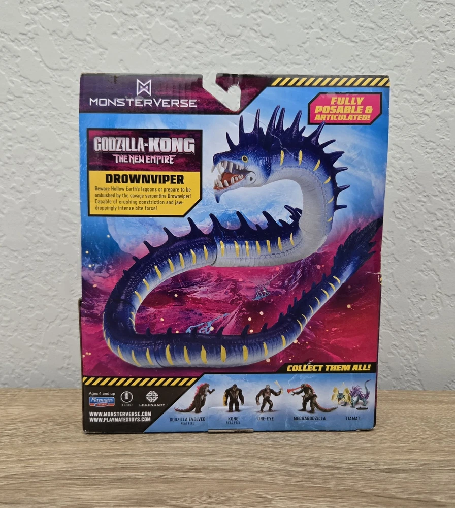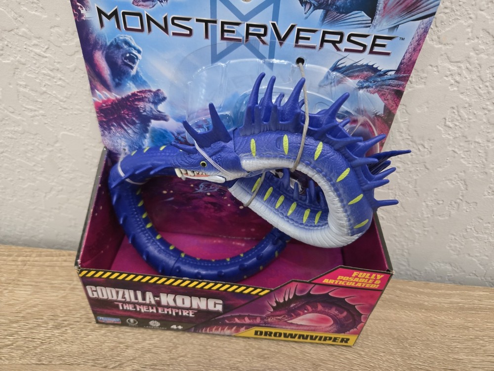 *Free shipping with USPS Ground Advantage. Ships ASAP. Packaged with care (bubblewrapped in and a cardboard shipping box). Smoke-free home.* Please refer to the pictures for the box detail. The Godzilla x Kong The New Empire DROWN VIPER Figure is a fully posable and articulated action figure based on the character Drownviper from the movie Godzilla x Kong: The New Empire. This 7-inch plastic figure is part of the Godzilla x Kong franchise and comes in a blue color scheme. It includes adjustable features and is boxed for display. Manufactured in 2024 by Playmates Toys, this collectible item is suitable for ages 4 and up, perfect for fans of the Godzilla x Kong movies and action figures.