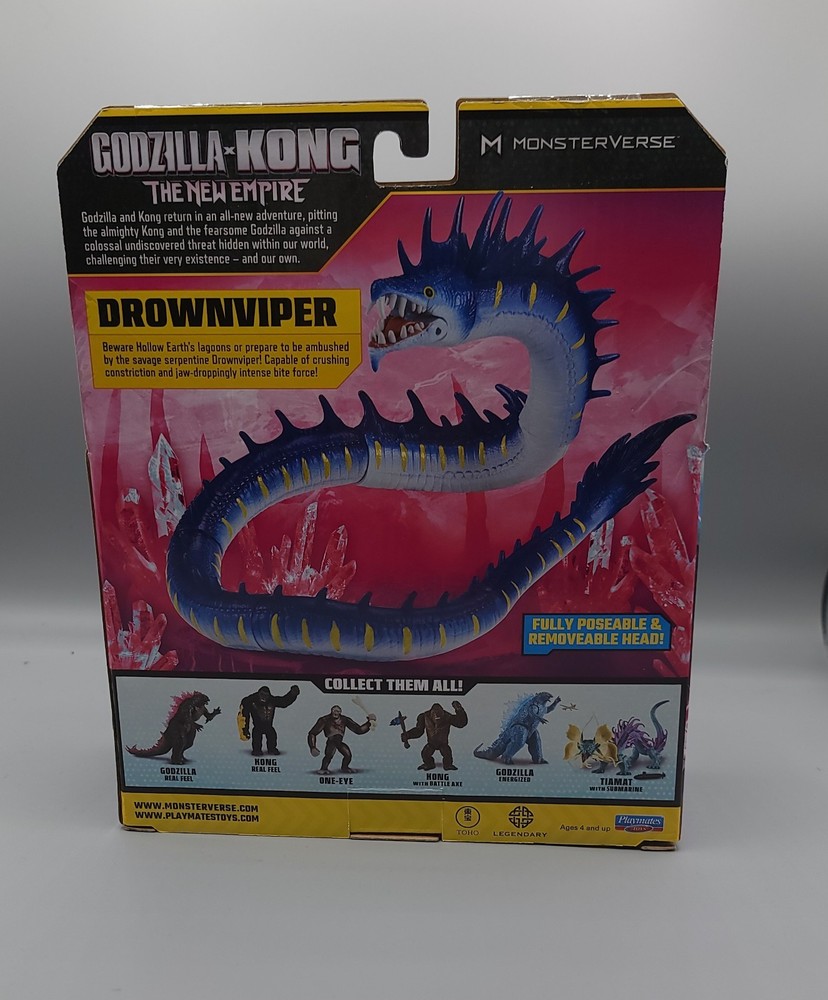 The Godzilla x Kong The New Empire Drownviper 7" Action Figure is a new collectible toy based on the popular franchise. This figure features characters from the movie Godzilla x Kong: The New Empire, including Godzilla, Tiamat, and King Kong. Made of durable plastic, this original Playmates action figure stands at 7 inches tall and is part of the Monsterverse TV show. With intricate details and a nod to the upcoming film release, this Drownviper figure is a must-have for fans of the Godzilla series.
