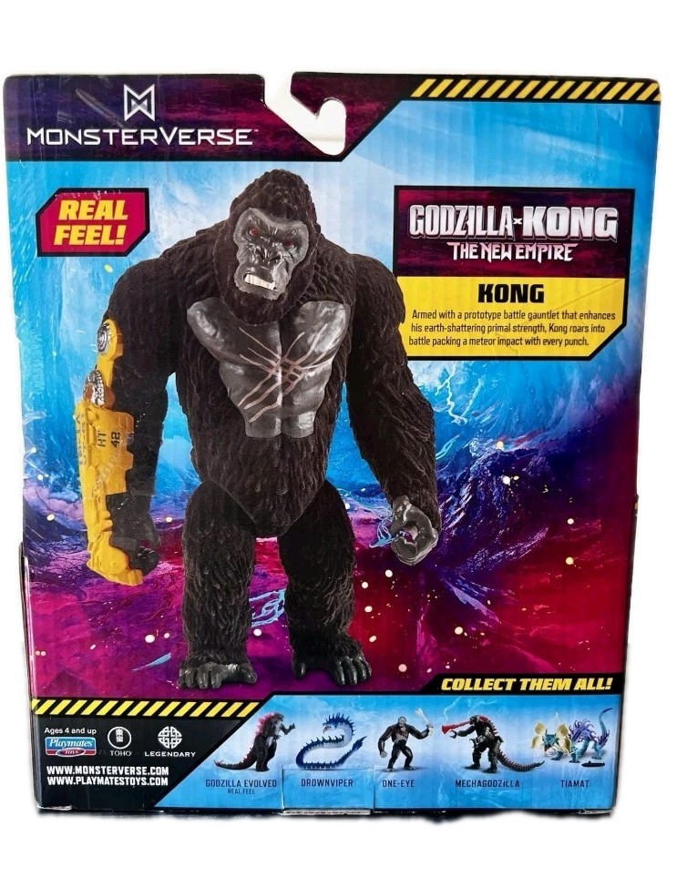 The Godzilla x Kong: The New Empire KONG REAL FEEL Action Figure by Playmates is a brand new toy featuring characters from the popular Godzilla franchise. This action figure is designed to provide a realistic feel and is recommended for children aged 4 and above. With intricate details and high-quality craftsmanship, this toy is perfect for young fans of Godzilla and Kong, allowing them to recreate epic battles and imaginative adventures. Made in China, this action figure is sure to be a hit among collectors and children alike.