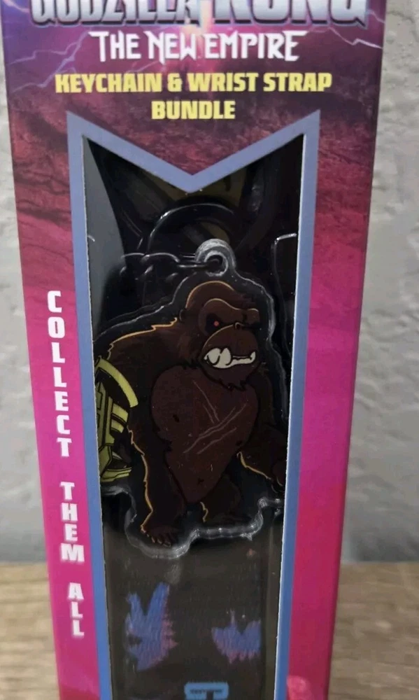 *Free shipping with USPS Ground Advantage. Ships ASAP. Packaged with care. Smoke-free home.* Please note - box has a tear on the backside as shown in the attached pictures. This Godzilla x Kong Keychain & Wrist Strap is the perfect addition to any fan's collection. Featuring King Kong, this collectible item is exclusive and boxed, making it a must-have for any fan of the Godzilla x Kong franchise. The multicolor design and 2-inch height make it a great display piece, while the keychain and wrist strap make it practical for everyday use. Manufactured in China in 2024, this action figure is suitable for ages 5+ years and is part of the Monsterverse brand. The Godzilla x Kong Keychain & Wrist Strap is a great way to show off your love for the TV, movie, and video game theme. Get yours today and add it to your collection! Keychain - 2" tall Wrist Strap - 1" x 5" Charm - 1" tall
