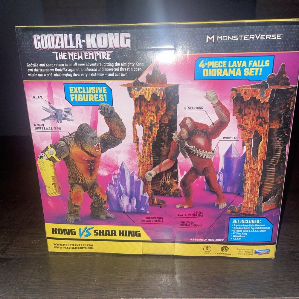 Get ready for an epic battle with the Godzilla x Kong: The New Empire - Kong Vs Skar King set from Playmate. This toy set is perfect for fans of the Godzilla franchise and children aged 4 and above. It features intricate details and designs that will delight any collector or young enthusiast. The set includes two figures, Kong and Skar King, both of whom are highly poseable and can engage in a fierce battle. The figures are made from high-quality materials and are perfect for play or display. With its thrilling theme and impressive design, this toy set is a must-have for any fan of the Godzilla x Kong franchise.