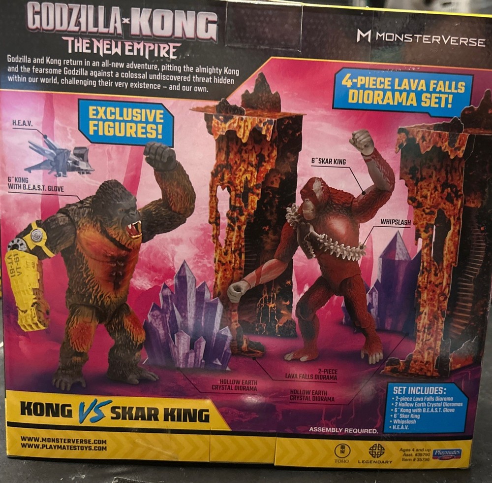 The product is a set of exclusive action figures from the movie Godzilla vs. Kong, featuring characters Godzilla and Kong in sealed and new packaging. Manufactured by Playmates Toys, these figures are part of the franchise King Kong and are designed with multicolor detailing. The figures are inspired by the popular monsters theme and were released in 2024, making them a collectible item for fans of the Godzilla and Kong series.