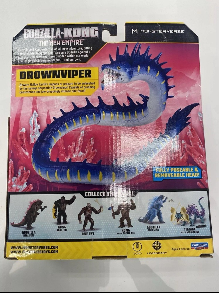 Unleash the thrill of the Monsterverse with the DROWNVIPER action figure from the "Godzilla x Kong: The New Empire" movie. Crafted with precision by Playmates Toys, this 1:12 scale replica brings the formidable undersea creature to your collection. The figure is fully articulated, allowing for dynamic posing and reenactment of epic battles from the film. Sporting its vibrant, multicolor design, the DROWNVIPER figure is made from durable plastic and stands as a testament to the enduring legacy of the Godzilla franchise. Not just a collector's item, this action figure is suitable for fans aged 4 and up, ready to spark imaginations and inspire adventures.
