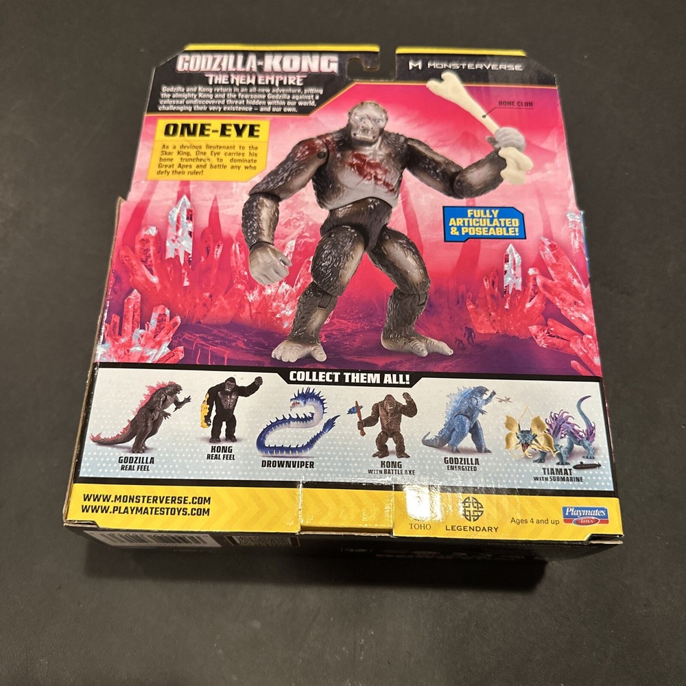 This is a Godzilla x Kong ONE-EYE action figure from the Monsterverse series by Playmates. It is themed around Godzilla and is set to be released in 2024. The figure is recommended for ages 4 and up, with an age level of 8-11 years. It is manufactured in China.