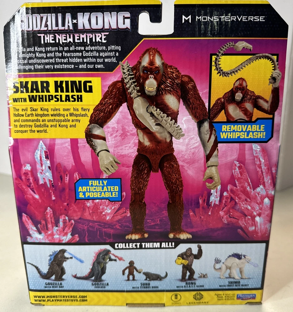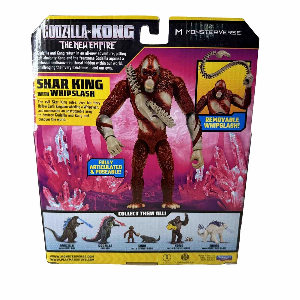Get ready for an epic battle with the Godzilla x Kong: The New Empire - Skar King with Whipslash Figure. This Playmate brand toy is the perfect addition to any young monster fan's collection. The figure features Skar King, a formidable monster from the Godzilla universe, complete with his signature whipslash attack. This toy is recommended for children ages 4 and up and is sure to provide hours of imaginative play. Join the battle between Godzilla and Kong and let your child's imagination run wild with this exciting toy. THANK YOU FOR BROWSING MY LISTINGS. § I am a trusted long-time seller with excellent feedback. § Ships quickly! § All item brands are Authentic or your money back! § I stand by every one of my items and will do what it takes to make your shopping experience right! § I offer No Hassle returns and fast shipping! § Packaging counts and all items are neatly packaged and secured to ensure your purchase arrives to you just as you expected it. § Great brands at great discounts. New items are added daily. § Thank you for browsing my listings and your continued support.