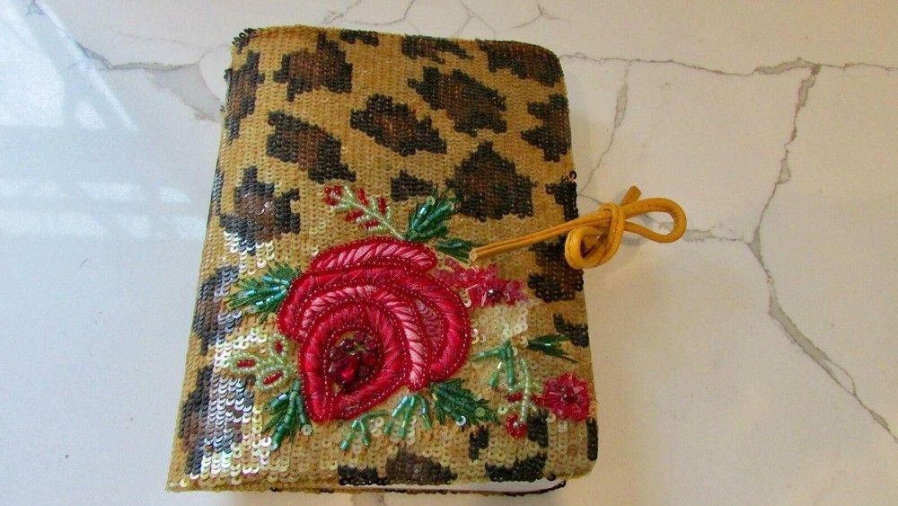 Gorgeous Animal Print Beaded Fabric Photo Album by Santi New with Tag Gorgeous Animal Print Beaded Fabric Photo Album by Santi New with Tag Click images to enlarge Description Gorgeous Animal Print Beaded Fabric Photo Album by Santi New with Tag Beautifully detailed beaded and sequined photo album Gold fabric lined. Animal print design with a rose flower beaded center. Holds 36 4x6" prints Overall measures 6.5" x 5" Leather tie closure. Purchased many years ago from Neiman Marcus. Never used. Photos: Photos are of actual item. Colors may vary due to lighting and camera angles Please view all pictures carefully as they are considered part of the description. There is no warranty and none is implied. Being sold as is, as pictured. Please ask any and all questions befor bidding. Comes from a smoke free home. Happy to combine shipping. Shipping and payment: Buyer to pay within 3 days of auction close. Shipping charges include delivery confirmation for all items. Insurance is included in shipping charges i Payment is by paypal only. International bidders are welcome and shipping will be charged accordingly. Get images that make Supersized seem small. Showcase your items with Auctiva's Listing Templates! THE simple solution for eBay sellers. Track Page Views With Auctiva's Counter