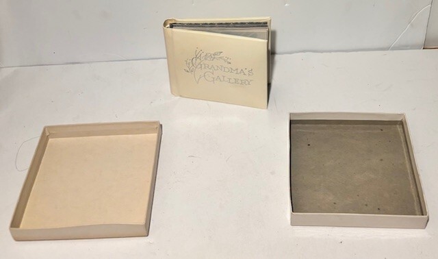 This is brand new and comes in the vintage box. The top of the box has a slight discoloration in two minor spots but the actual album looks in perfect condition. No marks, folds or damage at all. This is absolutely adorable and any grandma would love to have this! Super fun and I believe this is vintage too. Size is 4 3/8" x 3 7/8."