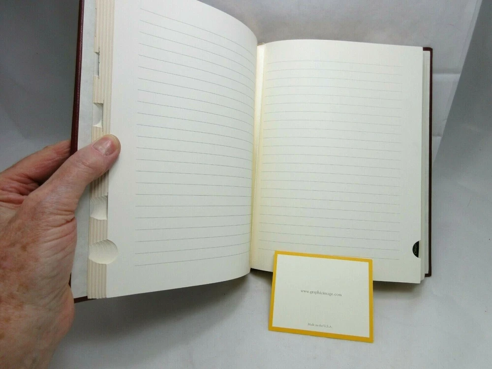 New Library size leather bound wine journal contains 224 lined pages and tabs for wine selections from France, Italy, the USA, Germany and Australia. Size 7" x 9.50" 224 pages Cream-white acid-free paper with gilt edges Bookbound - not refillable Luxe hubbed spine Double-faced cream satin ribbon marker Tabbed France Italy USA Germany Australia and 'Other' Hand-crafted genuine leather-bound book. Reduced from $94.00 If you’re buying multiple items from us, we are happy to ship everything to you in the same package. Simply add the items you want to buy to your cart and ebay will adjust the shipping cost as you checkout. Or select “request an invoice” and we will adjust the shipping cost.