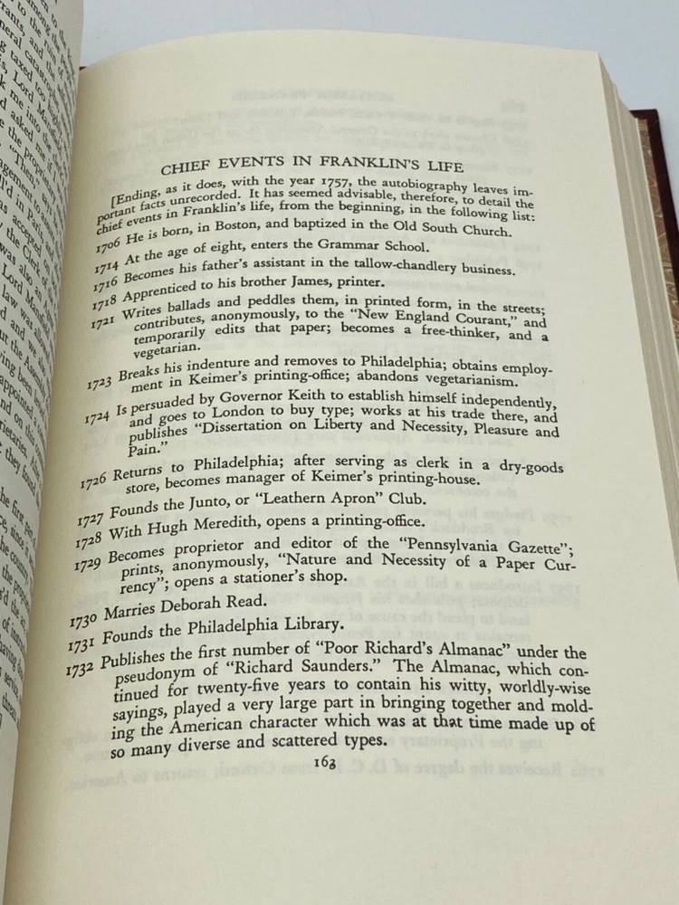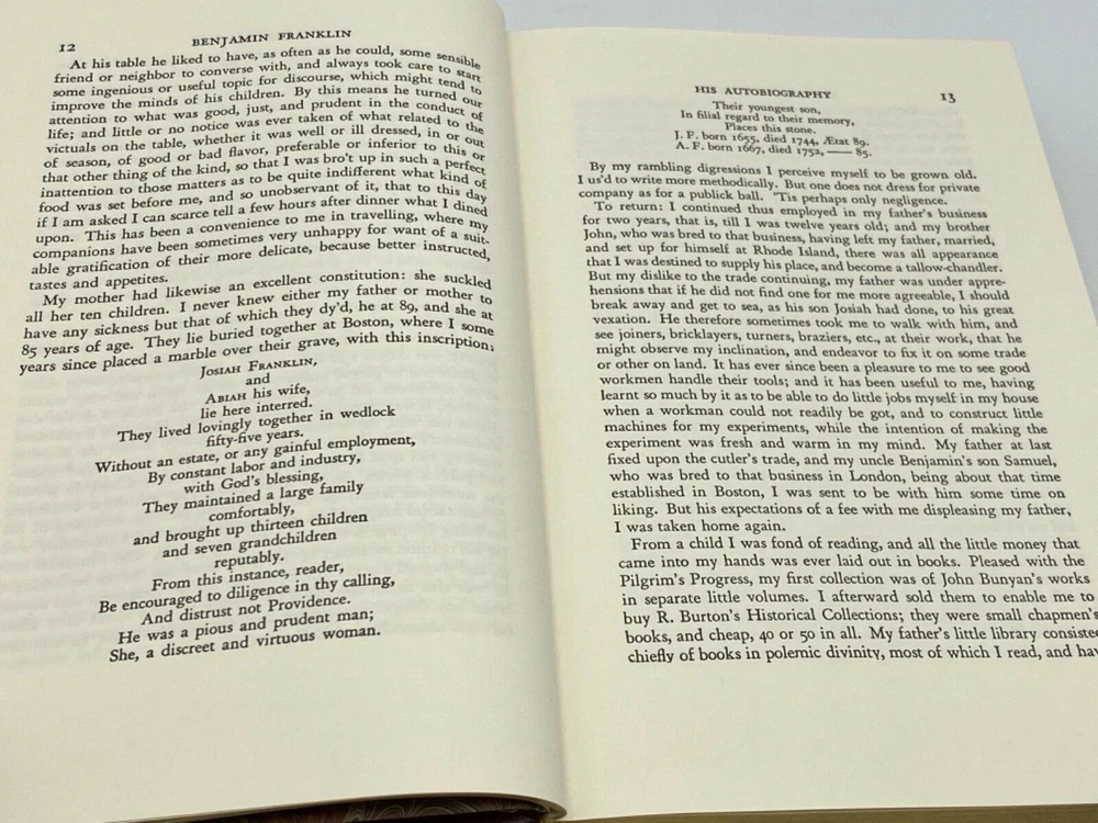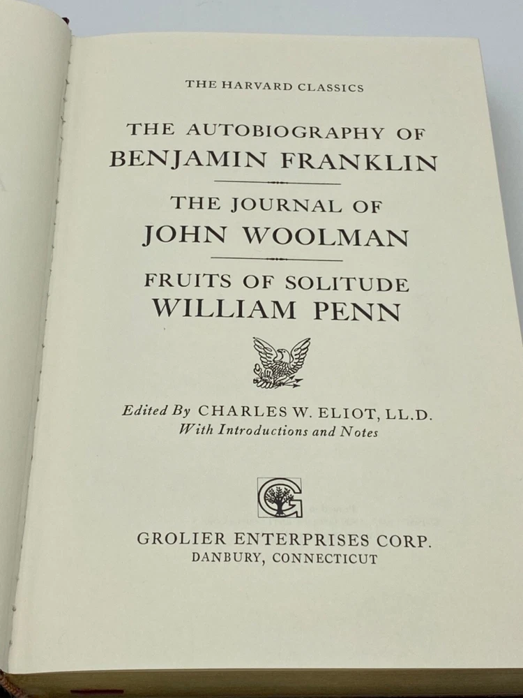 MAKES A GREAT GIFT FOR ANY FAN OF THE CLASSICS ** PLEASE READ : Mahalo for taking the time to look at our listing. We truly appreciate it. We always do our BEST to give you the most accurate description of these beautiful books. If, however, you have any SPECIFIC questions about the SIZE of the book, NUMBER of pages, TYPE of leather, SMELL or FEEL of the book, PLEASE email us through EBay’s mail system BEFORE you bid, and we will be HAPPY to give you more information. We want you to be completely happy with your purchase and keep you as our customers for years to come!** DESCRIPTION: GROLIER’S fine BONDED LEATHER edition, long out of print and highly collectible edition of THE PRINCE by NICCOLO MACHIAVELLI; UTOPIA by Sir Thomas More; NINETY-FIVE THESES: Address to the German Nobility Concerning Christian Liberty by MARTIN LUTHER ABOUT THE BOOK: This beautiful edition contains the following: THE AUTOBIOGRAPHY OF BENJAMIN FRANKLIN; THE JOURNAL OF JOHN WOOLMAN; and FRUITS OF SOLITUDE by WILLIAM PEN. CONDITION: Book is in LIKE condition for its age with a few minor rubs to the gilt endpages (SEE PICS). NO ATTACHED BOOKPLATES, WRITING FROM PREVIOUS OWNER, ETC. It is a BEAUTIFUL edition of these classics. SHIPPING: FREE TO US ADDRESSES ONLY. INTERNATIONAL $ based on location. WE SHIP PRIORITY MAIL & PACK VERY WELL. Please check out my other listings of Easton Press, Franklin Library, Limited Editions Club, First Edition Library, and Folio Society editions. WE DO COMBINE SHIPPING IF YOU PURCHASE MORE THAN ONE COPY. Mahalo for looking at our listings! By bidding/purchasing this item, you are helping a very grateful family who sends you our WARMEST ALOHA & MAHALO!