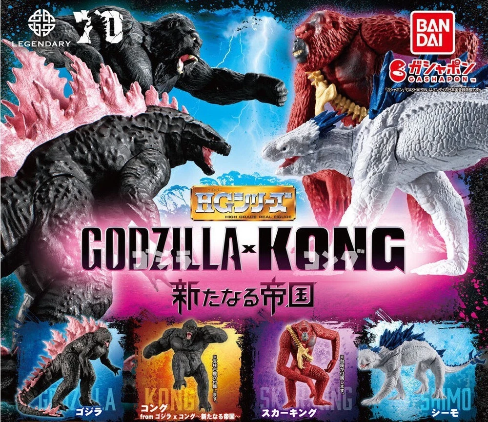 【Reserved】HG Godzilla x Kong: The New Empire 【Complete Set】of 4 HG figures Japan Description About This Items This is a complete set of 4 miniature( Shimo; Scar King; Godzilla; Kong) Capsule not included Condition New 100% Authentic Shipping Shipping with tracking NO. International Buyers - Please Note: We ship items from Japan . Import duties, taxes (example VAT, GST), and charges are not included in the item price or shipping cost. These charges are the buyer's responsibility. Please check in advance about those additional costs in your customs office before buying. Generally, those additional costs will be charged by the carrier when you receive the item. We write the customs declaration correctly. No undervalue. No checkmark gift. About Us Welcome to KAWAII's Shop! Hi there, I'm Himawari from Japan, the owner of this shop! We specialize in selling adorable and captivating items, including anime-related figures and stickers. Let your favorite kawaii things brighten up your room! Whether for your collection or as a gift, we have the perfect items for you. Our Policy Authentic Japanese Products: All items are sourced directly from Japan and are 100% genuine. Fast Shipping: We ensure quick and careful shipping. High-Quality Items: We only offer carefully selected, high-quality products. Excellent Customer Service: We respond promptly to any questions or requests. Enjoy Your Shopping! If You Have Any Questions, Please Feel Free To Contact Us. We Will Get Back To You As Soon As Possible.