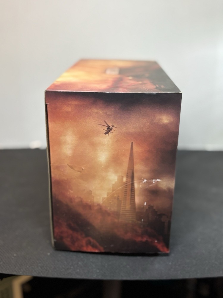 Item is exactly as pictured and described, seller let me know they had the item boxed up and were shipping it. Item arrived quickly and was packaged well. Figure was slightly disassembled for packaging and shipping (tail removed for space saving)