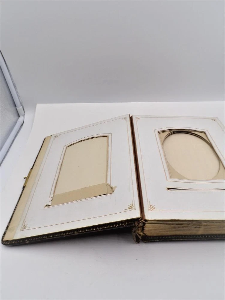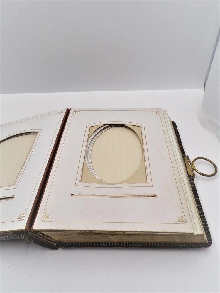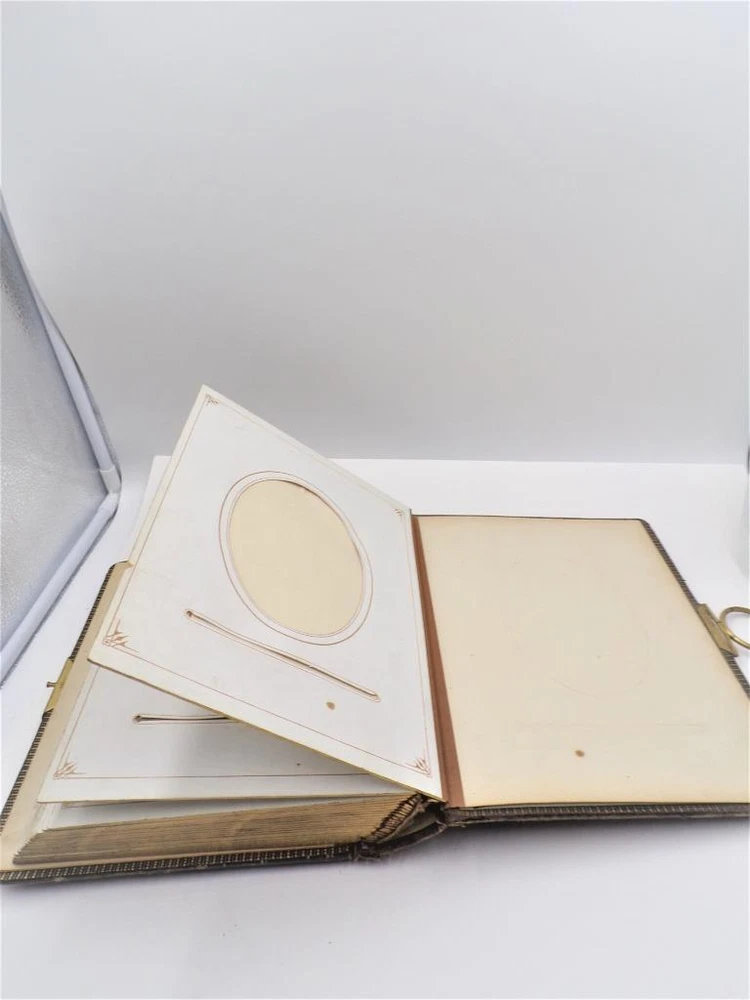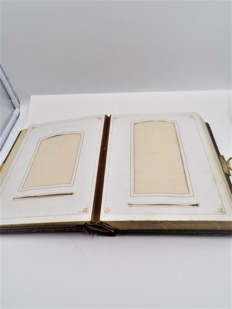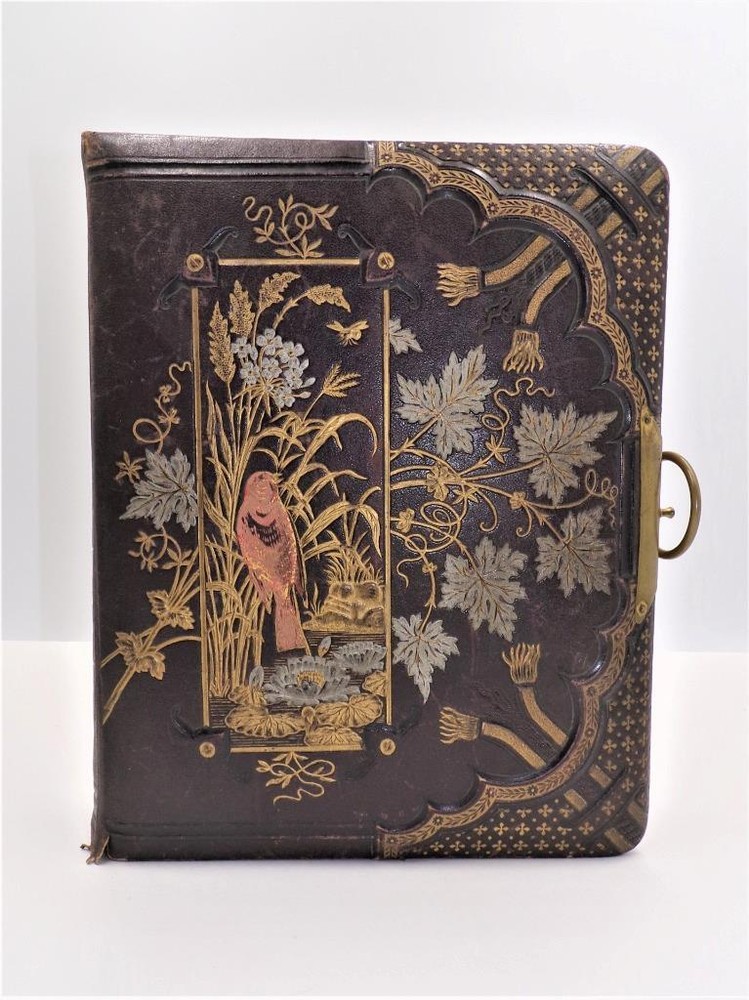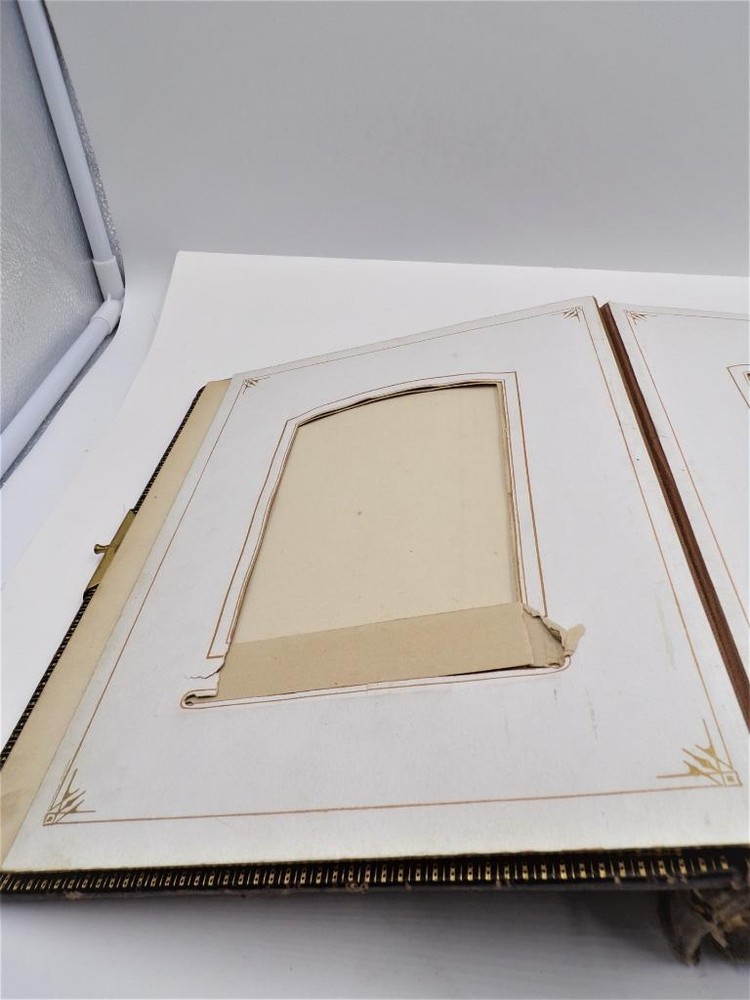HTF Antique Leather Bound Gilt Tooled Embossed Photo Album Brass Closure EMPTY HTF Antique Leather Bound Gilt Tooled Embossed Photo Album Brass Closure EMPTY Click images to enlarge Description HTF Antique Victorian Leather Bound with Gilt Accents Tooled Embossed Photo Album Brass Closure Clasp Late 19th to early 20th-century photo album. Brown leather binding with gilt embossed decoration and gilt edged pages Marked (spine, title page): Album some spine separation 20 Pages double sided Tag on inside back page: No. E3240 M.R. GATELY BOOKSELLER, 23 Hawley St., BOSTON, MASS. 10 1/2" long x 8 1/2" wide x 2 1/2" tall Wonderful Condition for Age! PLEASE VISIT OUR EBAY STORE FOR MORE GREAT ITEMS! SHOP WITH CONFIDENCE WITH OUR 100% FEEDBACK! IF YOU HAVE ANY QUESTIONS, PLEASE DO NOT HESITATE TO ASK AND I WILL RESPOND PROMPTLY THANK YOU FOR LOOKING! Pictures sell! Auctiva offers Free Image Hosting and Editing. 300+ Listing Templates! Auctiva gets you noticed! The complete eBay Selling Solution. Track Page Views With Auctiva's Counter