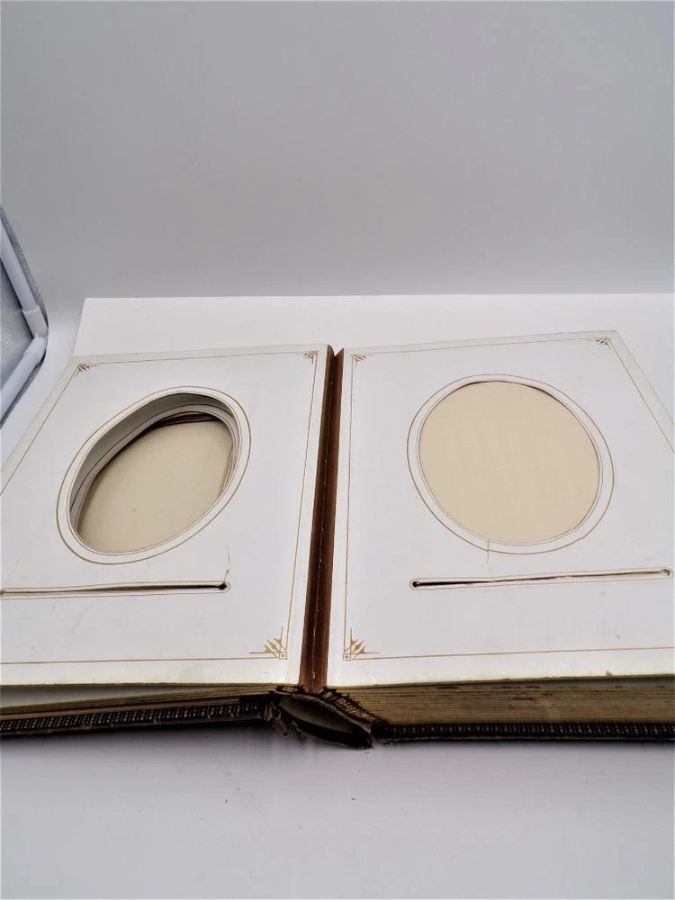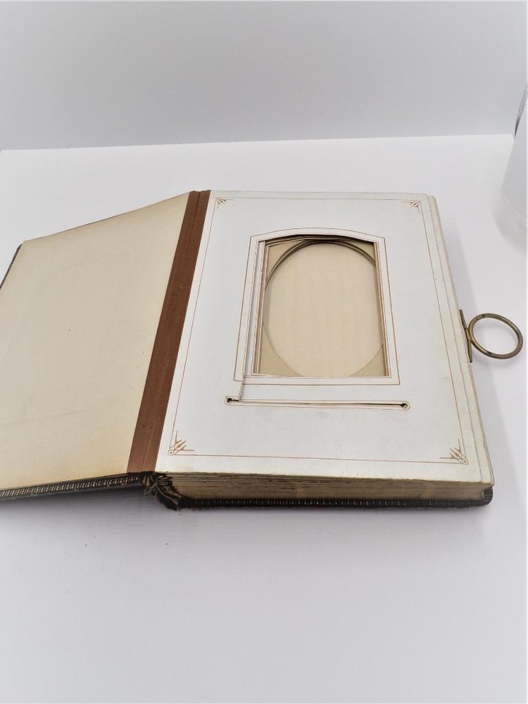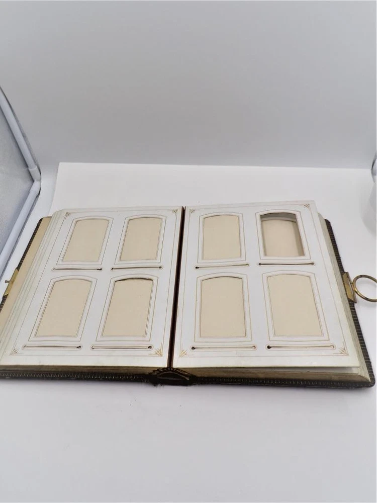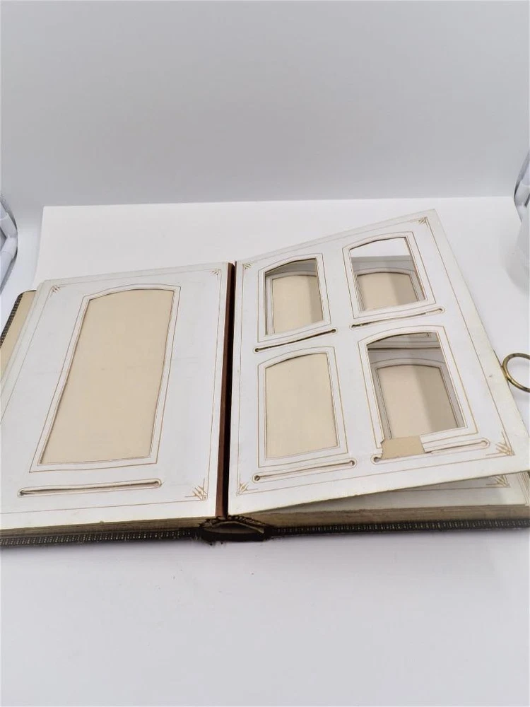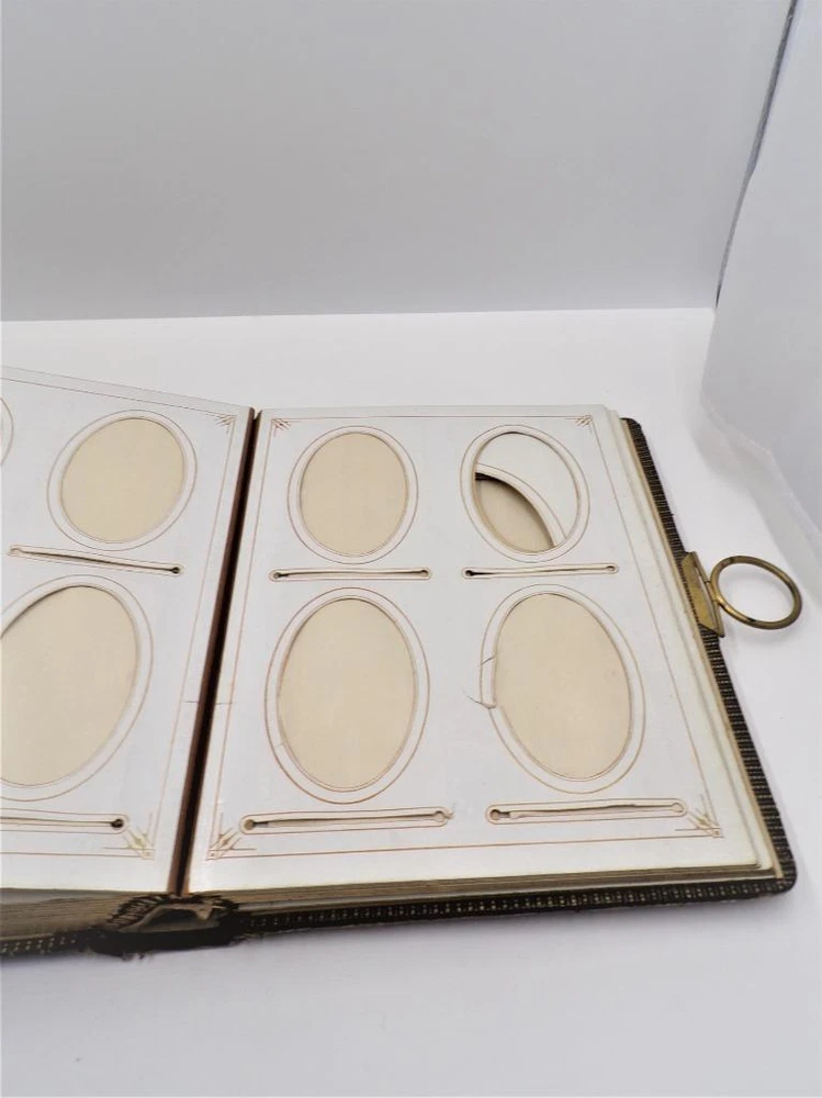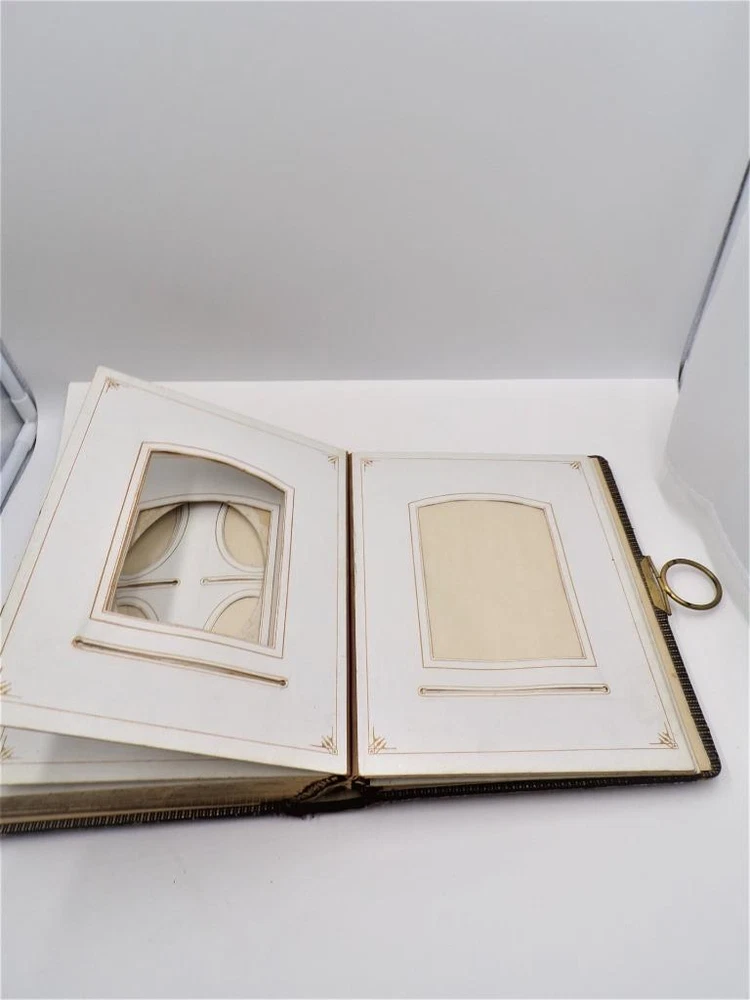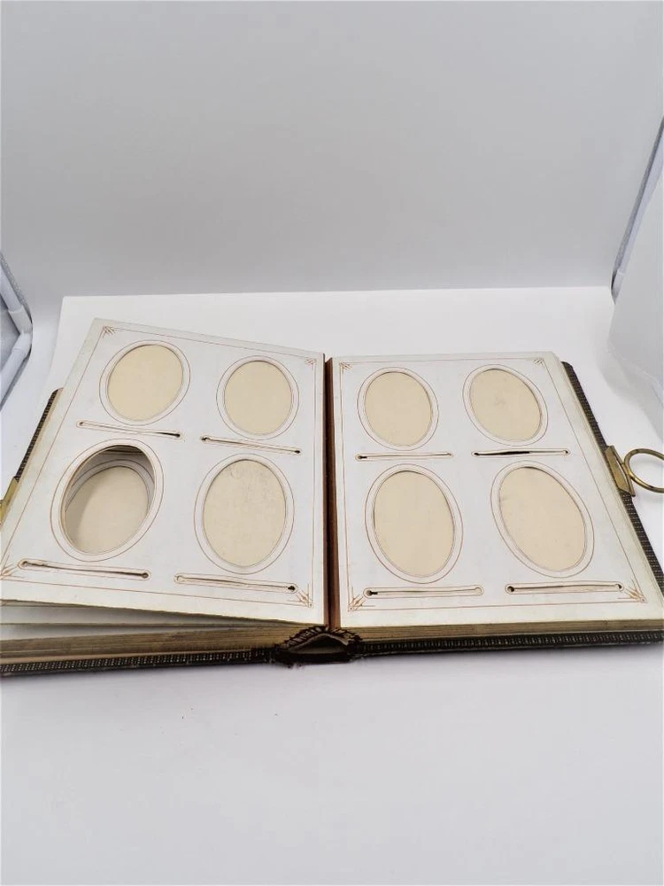 HTF Antique Leather Bound Gilt Tooled Embossed Photo Album Brass Closure EMPTY HTF Antique Leather Bound Gilt Tooled Embossed Photo Album Brass Closure EMPTY Click images to enlarge Description HTF Antique Victorian Leather Bound with Gilt Accents Tooled Embossed Photo Album Brass Closure Clasp Late 19th to early 20th-century photo album. Brown leather binding with gilt embossed decoration and gilt edged pages Marked (spine, title page): Album some spine separation 20 Pages double sided Tag on inside back page: No. E3240 M.R. GATELY BOOKSELLER, 23 Hawley St., BOSTON, MASS. 10 1/2" long x 8 1/2" wide x 2 1/2" tall Wonderful Condition for Age! PLEASE VISIT OUR EBAY STORE FOR MORE GREAT ITEMS! SHOP WITH CONFIDENCE WITH OUR 100% FEEDBACK! IF YOU HAVE ANY QUESTIONS, PLEASE DO NOT HESITATE TO ASK AND I WILL RESPOND PROMPTLY THANK YOU FOR LOOKING! Pictures sell! Auctiva offers Free Image Hosting and Editing. 300+ Listing Templates! Auctiva gets you noticed! The complete eBay Selling Solution. Track Page Views With Auctiva's Counter