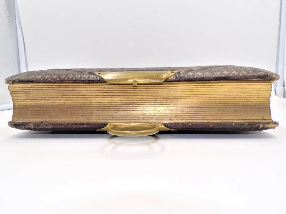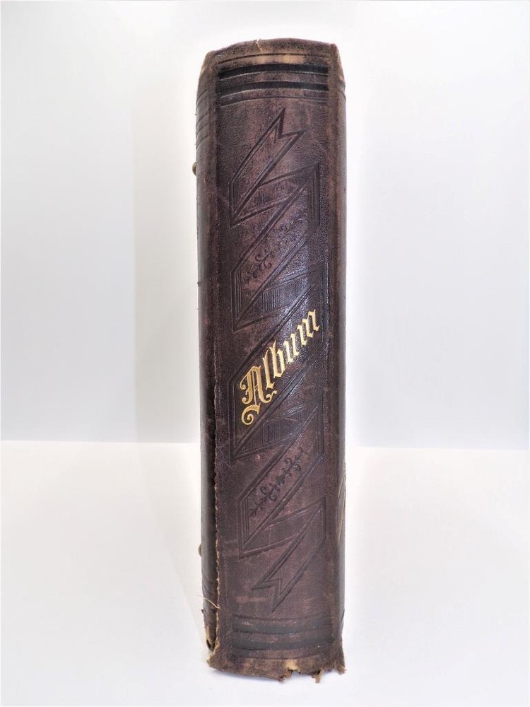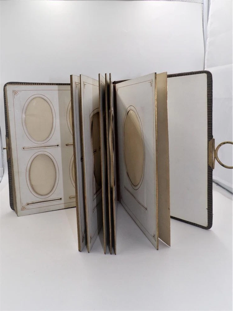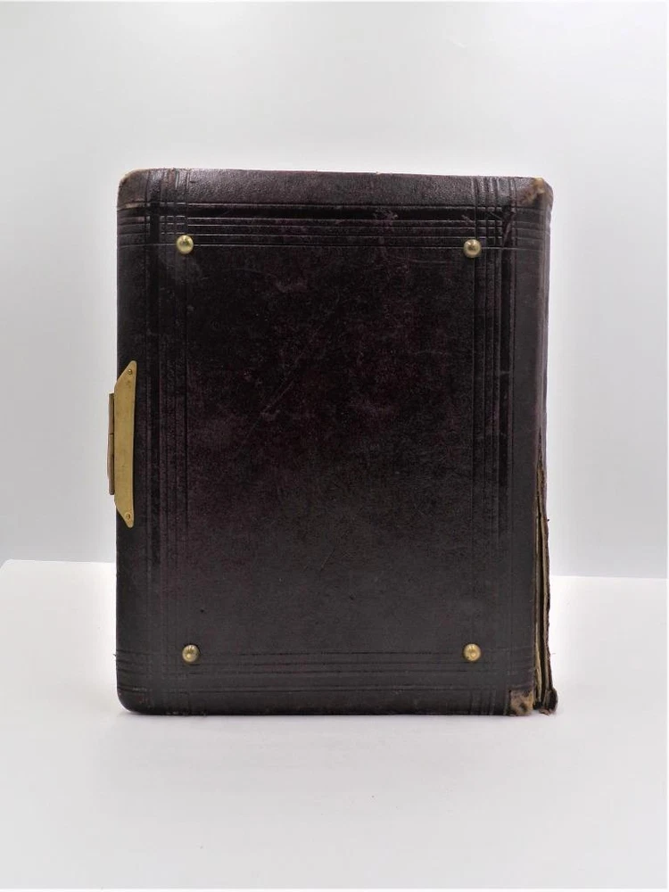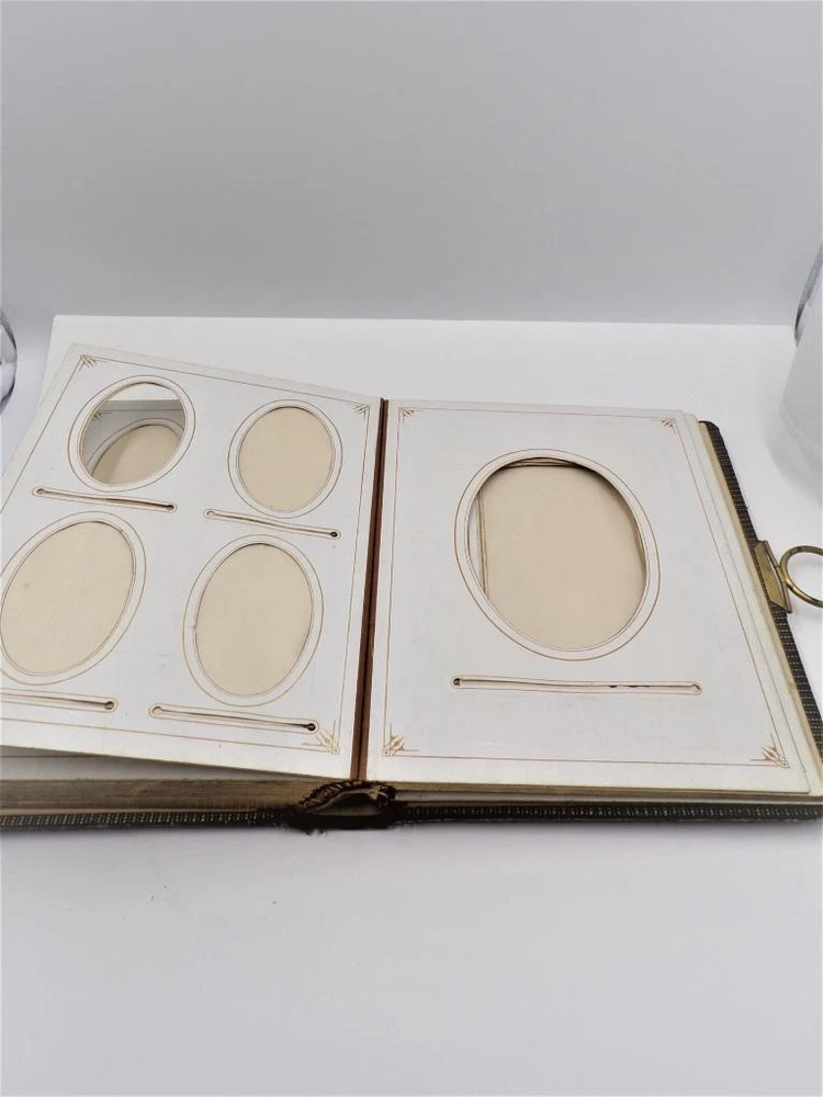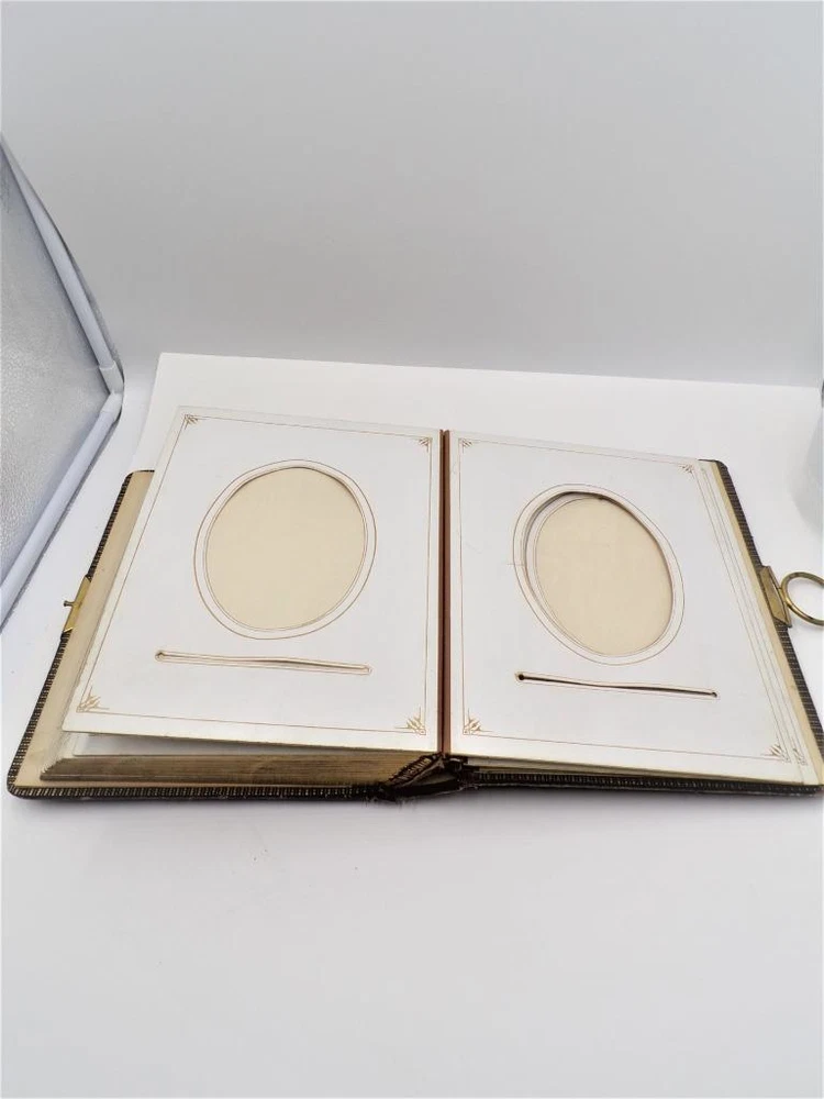 HTF Antique Leather Bound Gilt Tooled Embossed Photo Album Brass Closure EMPTY HTF Antique Leather Bound Gilt Tooled Embossed Photo Album Brass Closure EMPTY Click images to enlarge Description HTF Antique Victorian Leather Bound with Gilt Accents Tooled Embossed Photo Album Brass Closure Clasp Late 19th to early 20th-century photo album. Brown leather binding with gilt embossed decoration and gilt edged pages Marked (spine, title page): Album some spine separation 20 Pages double sided Tag on inside back page: No. E3240 M.R. GATELY BOOKSELLER, 23 Hawley St., BOSTON, MASS. 10 1/2" long x 8 1/2" wide x 2 1/2" tall Wonderful Condition for Age! PLEASE VISIT OUR EBAY STORE FOR MORE GREAT ITEMS! SHOP WITH CONFIDENCE WITH OUR 100% FEEDBACK! IF YOU HAVE ANY QUESTIONS, PLEASE DO NOT HESITATE TO ASK AND I WILL RESPOND PROMPTLY THANK YOU FOR LOOKING! Pictures sell! Auctiva offers Free Image Hosting and Editing. 300+ Listing Templates! Auctiva gets you noticed! The complete eBay Selling Solution. Track Page Views With Auctiva's Counter