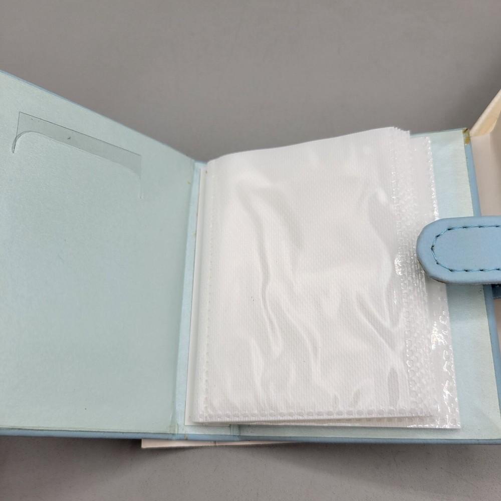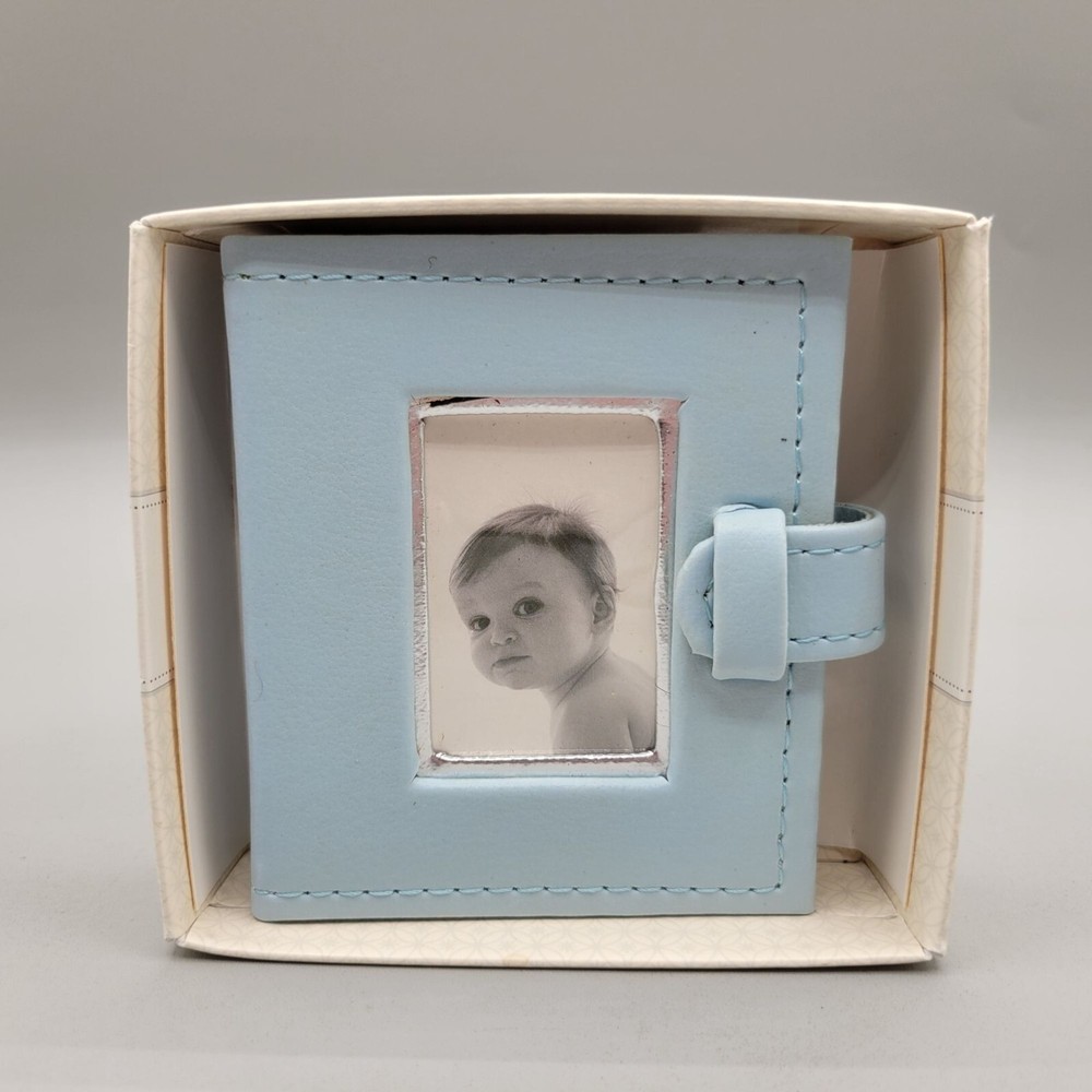 Gradma's Brag Book by Hallmark Signature line. • Holds 24 2x3 photos in photo-safe pages • Baby blue simulated leather cover with secure fold over closure • Comes in its original box Condition - Minor amount of excess glue on front and back inside cover - see photos. Measures - 4" x 3.25" G25C021325