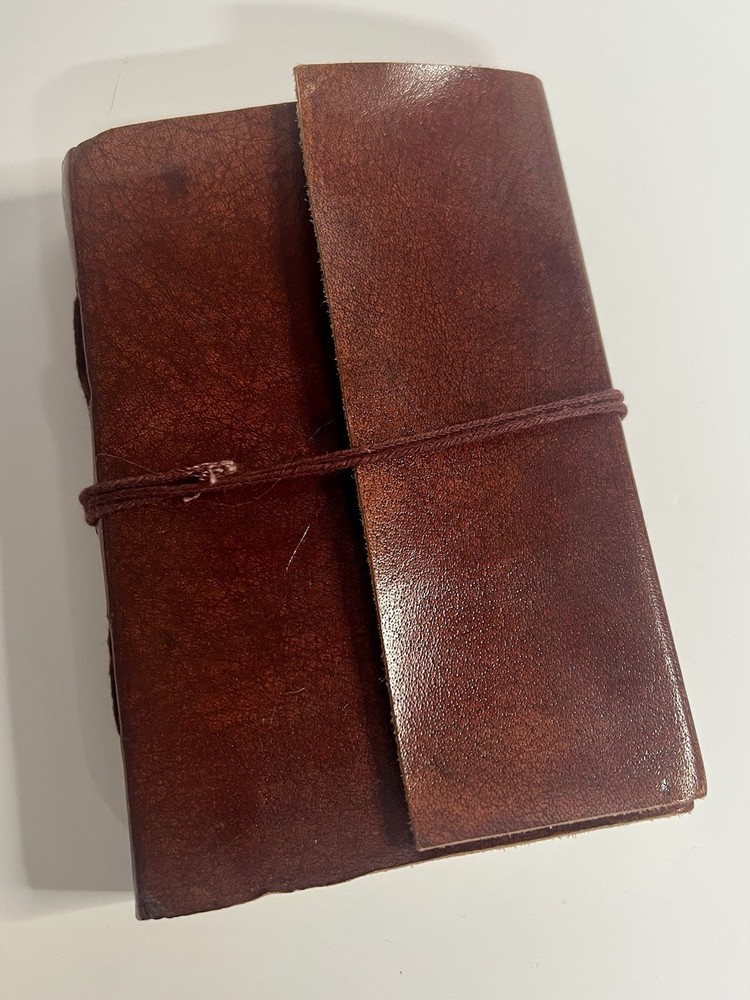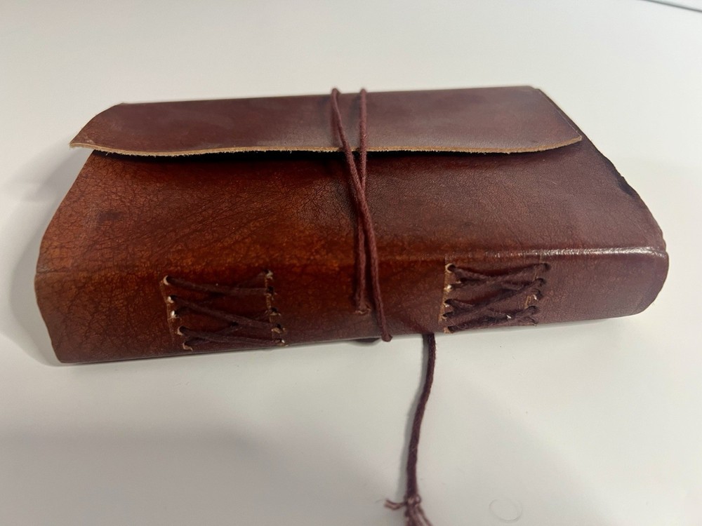 Handbound Leather Journal w/blank pages that I purchased in Germany, crafted by Gusti Leder. I have not counted the pages. Would make a wonderful art or writing journal. A very few of the pages have some dye that rubbed off of the string used to bound the book. From a non-smoking home.