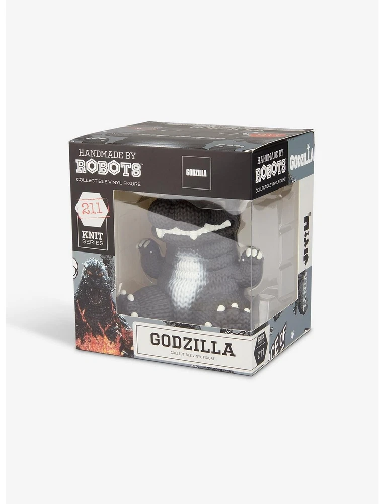 Handmade By Robots Godzilla Knit Series Vinyl Figure Friendly robots designed this Godzilla figure to look like knit fabric at a glance, but itβs actually made of vinyl. There's a signature vinyl tag on the figure, complete with barcode decal to resemble a sewn-in label. 5" tall Vinyl Imported