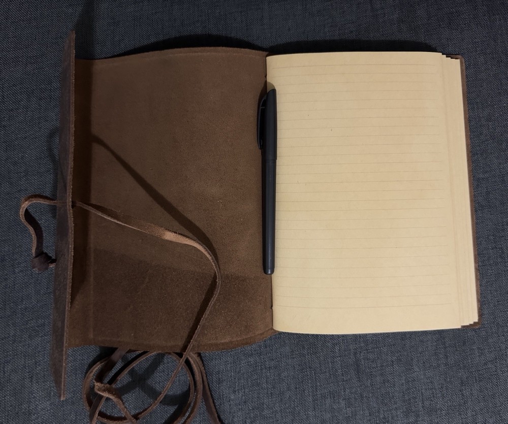 This handmade genuine leather bound journal notebook features plain matte paper with 110 pages, perfect for all target audiences. The brown leather cover adds a touch of elegance to this 5x7-inch notebook, ideal for business, office, or personal use. With a special feature of genuine leather material, this journal offers a unique and luxurious writing experience for each individual.