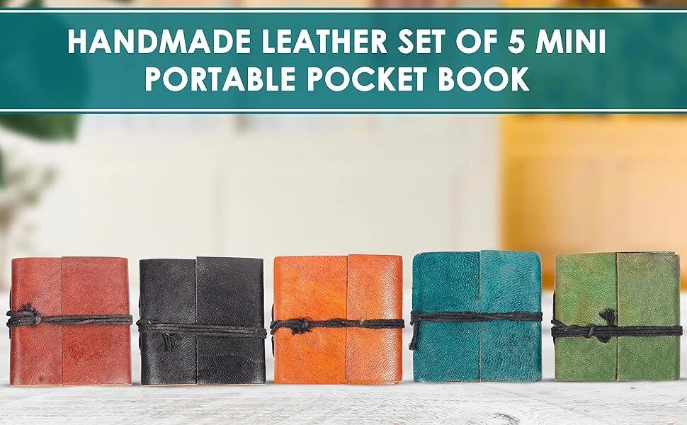 Handmade Leather Bound Book of Shadows Mini Leather Journal Notebook Blank Unlined Small Pocket Tiny Journal For Office||Artist|| Architect|| Vintage Diary for Women and Men - Set Of 5, Small ✅ Set Of 5 Pure Unlined Leather Miniatures Journals for Your daily Notes , Poems , Educational Purpose , Office Use . 7.5 X 7.5 cm. Size Of Each Diary : 136 Number Of Pages : Unlined Sides. ✅ GENUINE LEATHER CRAFTSMANSHIP - Crafted with authentic leather ,this old leather journal is naturally tanned with special oil and slightly distressed, giving it an old-world look, like it’s been passed down for generations. ✅ DURABLE – TREASURE IT FOR – You want your writing or sketching to be safe and treasured for a long time and we have taken care of this by giving this writing notebook. Every page of this diary will become gem with your precious memory. ✅ HANDMADE AND TRADITIONAL CRAFTSMANSHIP:- Leather is proud to bring more than 100 years’ experience of traditional Indian craftsmanship. We believe every idea, innovation or revelation is born in a journal. Bring yours to life with this one-of-a-kind journal. Unleash and organize your thoughts, plans and ideas with a journal that does your ideas justice. It's an handmade Small leather journal with beautiful cover. The journal is consisting of handmade Sketch papers (khadi papers). It's a refillable lock journal with 136 pages. Every page of this diary will become a gem with your precious memories. Usage: Personal journal, gift for women, gift for men, holiday gift, mother's day gift, father's day gift, birthday gift, Valentine's Day gift, vintage collection. The journal is made of leather and drawing papers which should be protected from water. Keep your notes intact in such elegant manner.Organizer/planner can be carried to interviews , meetings or personal use.This is elegant multi pocket organizer / planner with multi compartments like diary ,.Save your amazing memories, record your wonderful life with this dairy! A very beautiful gift for yourself or your friends. With its handsome Built Quality & vintage classic finish it will attract many looks. With it's thicker than usual pages, it can take being written on with a fountain pen without worry of bleeding or smudging! Blank craft papers are perfect for writing, drawing, stick photos or articles PERFECT SIZE FOR MANY USES :- Easy for handwriting, drawing or sketching and compact enough for carrying in your bag. Ideal for alternative Artists, Traveling, Business, Teen Journals, Poetry Work, Journalists, Food Planner, Scrapbook etc. MAKES A PERFECT GIFT - An amazing gift for yourself,this leather journal will help words flow freely, ideal for any budding writer, artist, or anyone simply wanting to do some high-quality note taking. Ideal for Aspiring poets, Weekly Food Planner, Instagram Scrapbook, Photo Album and Bible Journaling ,a vintage gift idea , unique sketchbook for drawing, best gifts for travellers. Shipping We ship within Three business days of payment, usually sooner. We use a selection of shipping services such as UPS, FedEx, USPS etc. We only ship to the lower 48 states, no APO/FPO addresses or PO Boxes allowed. Local pickups and combined shipping options are not provided at this time. Return You can return a product for up to 30 days from the date you purchased it. Any product you return must be in the same condition you received it and in the original packaging. Please keep the receipt. Payment We accept payment by any of the following methods: PayPal Please pay as soon as possible after winning an auction, as that will allow us to post your item to you sooner! Feedback Customer satisfaction is very important to us. If you have any problem with your order, please contact us and we will do our best to make you satisfied. Contact Us If you have any queries, please contact us via ebay. We usually respond within 24 hours on weekdays. Please visit our eBay store to check out other items for sale! Thank you for shopping at our store.