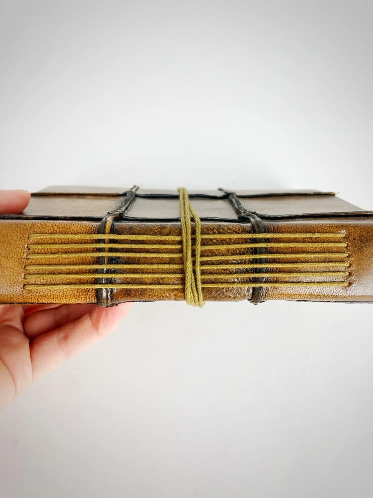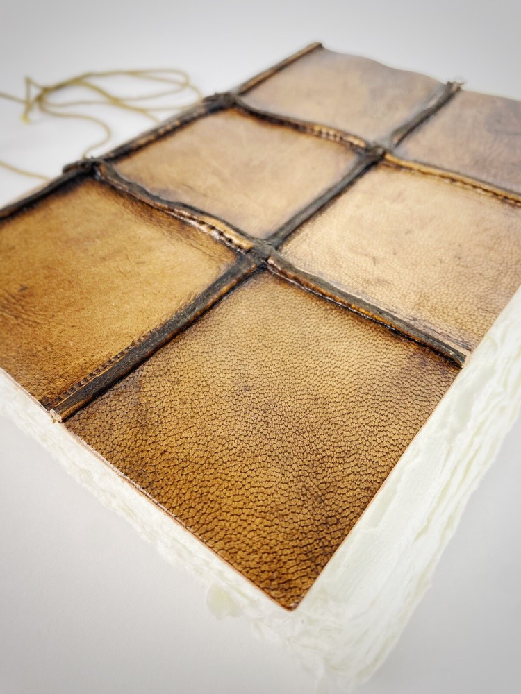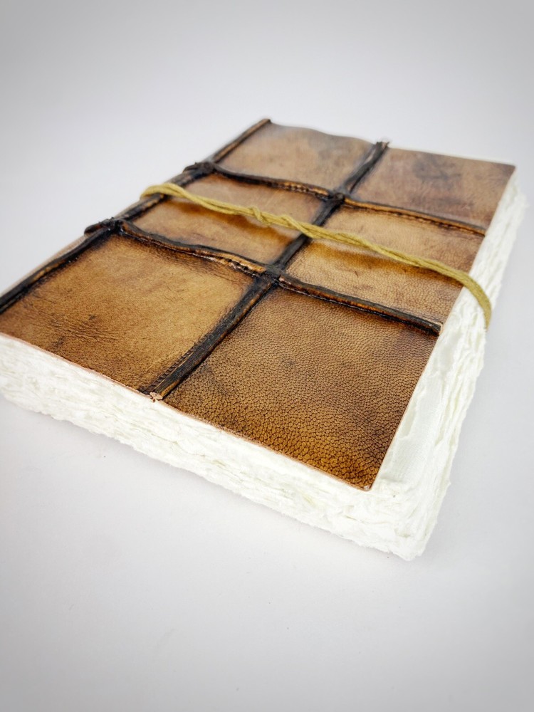 Handmade Leather Bound Journal, Notebook, Diary Thick Torn Textured Paper / Quilted Leather Bound Around a 156 unlined blank thick textured pages in this beautiful quilted leather bound handcrafted notebook, perfect for any writer or artist. This is brand new with tags, handmade in India. A string wraps around it to help it stay closed when not in use. Overall it is 6" x 7.75" in size. I have two available! ( PLEASE SEE PHOTOS! ) By purchasing this item, you are acknowledging that you fully inspected all photos, read the description and understand that the items are sold as is, and are in as is condition and will not be eligible for any type of return. Please ask any and all questions before purchasing.