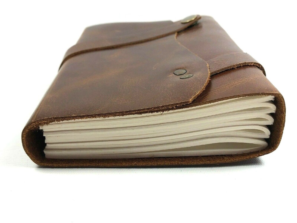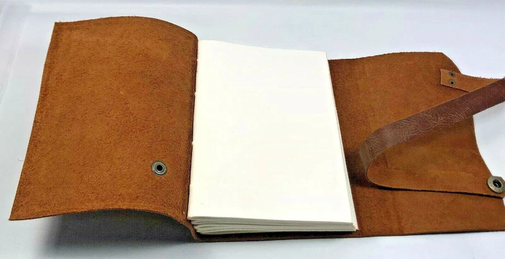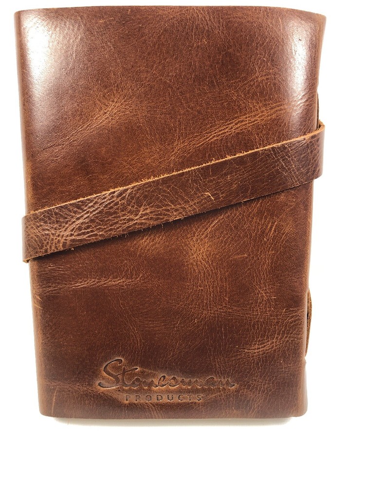 Stonesman Products Handmade Leather Bound Journal Travel Diary. Measures 5"x7" Recycled paper Condition is New. Please review all pictures 108 pages Thank you for looking Cheers, Jon & Mara