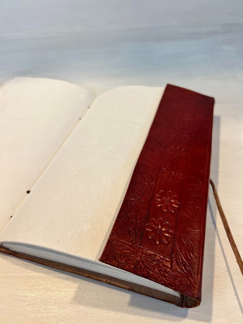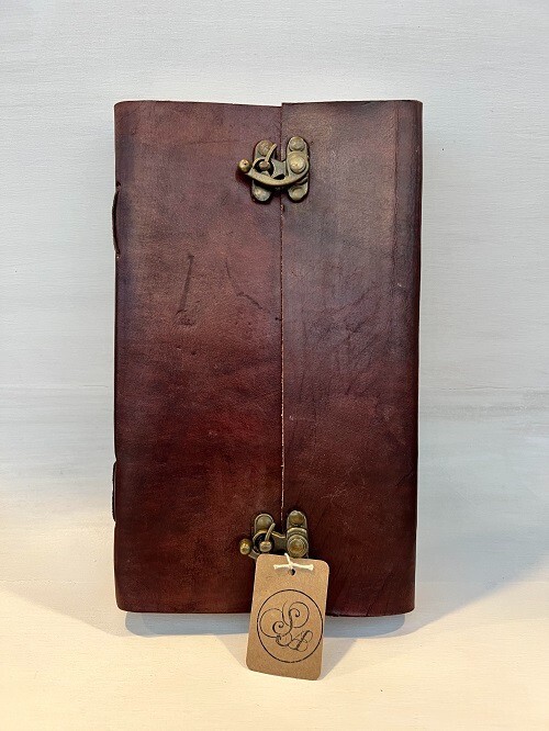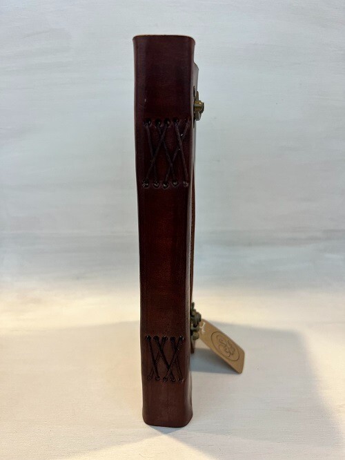 This beautiful vintage-look genuine leather journal will work perfectly as a diary or notebook. It is made out of recycled materials and has 200 plain white recycled wood-free cotton pages. Measures 9" x 5.5" x 1"