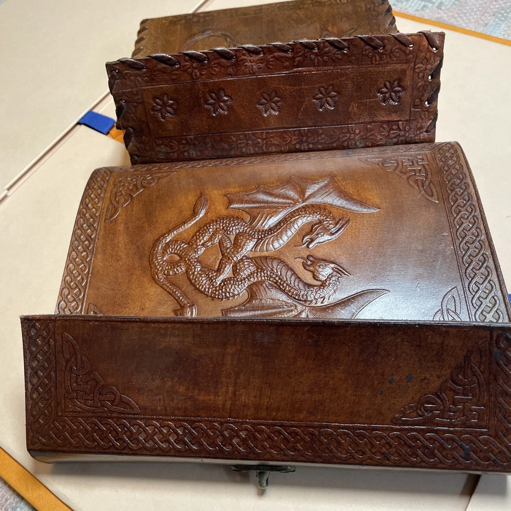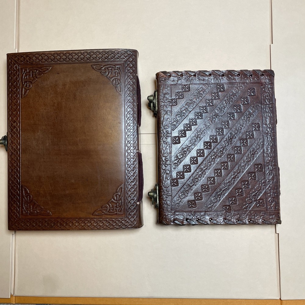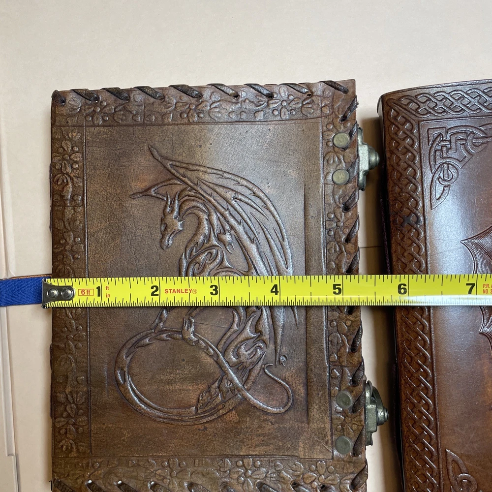 2 Handmade Leather Double Dragon Journals/Writing Notebook Diary/Bound Daily Notepad for Men & Women Unlined Paper Medium, Writing pad for Artist, Sketch. genuine leather journal will work perfectly as a diary or notebook Little Book has 100 pages Big book has 120 pages Dimensions in pictures