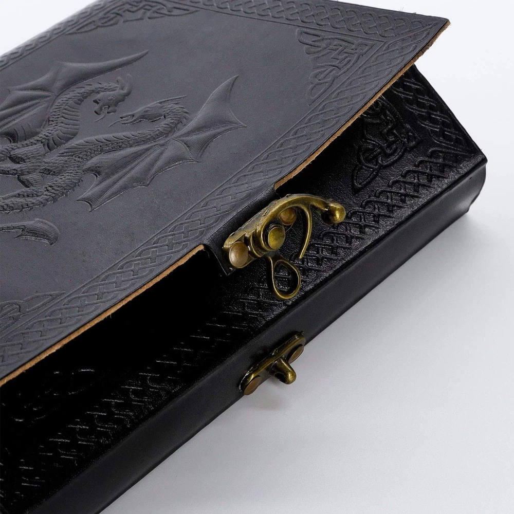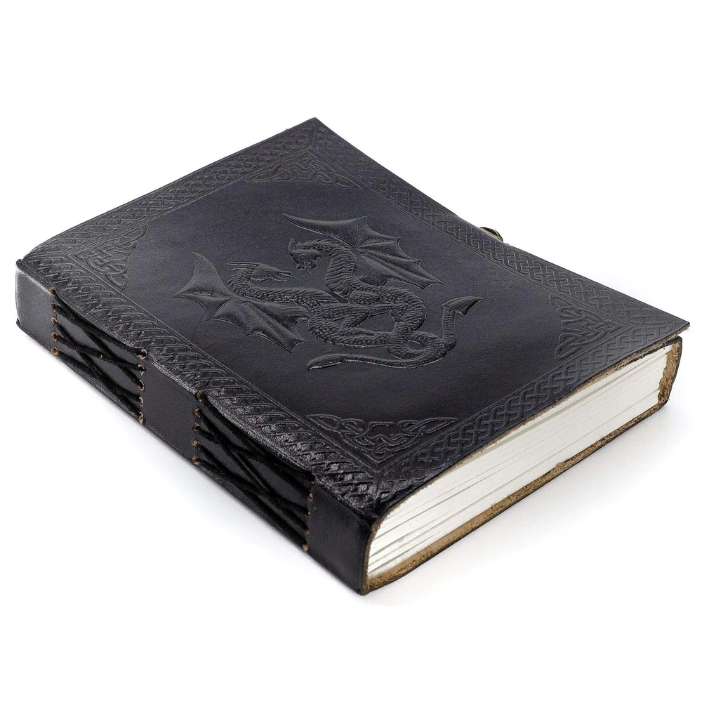 HANDCRAFTED FROM TOP GRAIN BUFFALO LEATHER: Each of our journals is handmade by skilled artisans using PREMIUM WATER BUFFALO LEATHER AND RECYCLED COTTON PAPER and features a BEAUTIFULLY CRAFTED DESIGN of Dragon leather cover, Which Makes it perfect for use as a LEATHER NOTEBOOK, SKETCHBOOK, NOTEPAD, DIARY and JOURNAL. PREMIUM MATERIALS, GREAT SIZE: Unlike an average journal that may be filled with low-quality paper that degrades the writing experience. Our Leather journals are made with Premium MATERIALS, Like Top Grain Water Buffalo Leather and PREMIUM 125 gsm EARTH-FRIENDLY PAPER that is perfect to write on. NO BLEED-THROUGH PAGES: BALL PEN AND SLOW FOUNTAIN PEN FRIENDLY. The journal measures 8 inches in height x 6 inches in width x 1.5-inch Thickness TELL YOUR STORY: We designed this classic leather journal for men and women as a time capsule for your thoughts. Capture your important memories, accomplishments, life-changing moments and evolving dreams as a keepsake to reflect upon in years to come. PERFECT GIFT AND COLOR OPTIONS FOR EVERY INDIVIDUAL: Makes an Awesome Anniversary, Valentine's, Christmas, and Birthday Gift. Great gift for women and men, Artists, and travellers. AVAILABLE IN two colours and 2 sizes. OUR 1-YEAR : Your purchase is risk-free if by any chance your handmade journal arrives damaged or you find any faults with the craftsmanship, Kindly let us know directly and we will send you a free or a full within a year of purchase