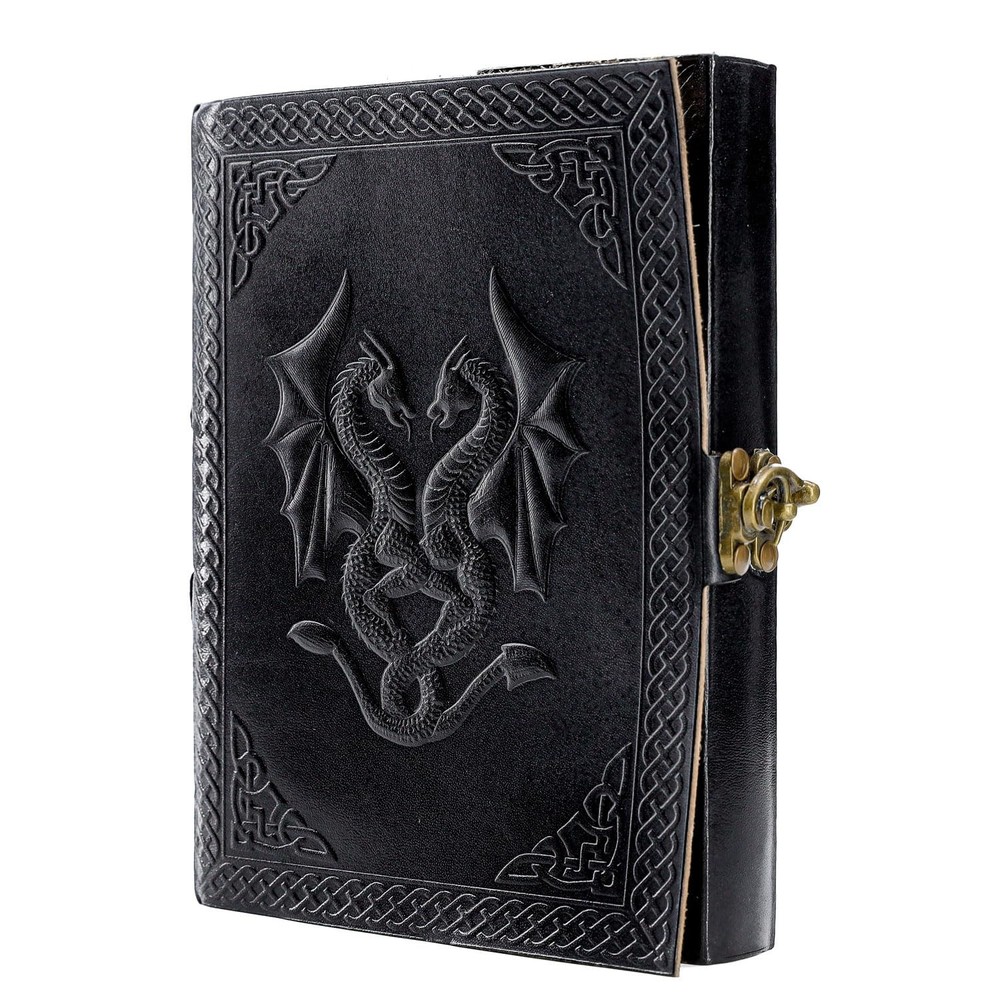 HANDCRAFTED FROM TOP GRAIN BUFFALO LEATHER: Each of our journals is handmade by skilled artisans using PREMIUM WATER BUFFALO LEATHER AND RECYCLED COTTON PAPER and features a BEAUTIFULLY CRAFTED DESIGN of Dragon leather cover, Which Makes it perfect for use as a LEATHER NOTEBOOK, SKETCHBOOK, NOTEPAD, DIARY and JOURNAL. PREMIUM MATERIALS, GREAT SIZE: Unlike an average journal that may be filled with low-quality paper that degrades the writing experience. Our Leather journals are made with Premium MATERIALS, Like Top Grain Water Buffalo Leather and PREMIUM 125 gsm EARTH-FRIENDLY PAPER that is perfect to write on. NO BLEED-THROUGH PAGES: BALL PEN AND SLOW FOUNTAIN PEN FRIENDLY. The journal measures 8 inches in height x 6 inches in width x 1.5-inch Thickness TELL YOUR STORY: We designed this classic leather journal for men and women as a time capsule for your thoughts. Capture your important memories, accomplishments, life-changing moments and evolving dreams as a keepsake to reflect upon in years to come. PERFECT GIFT AND COLOR OPTIONS FOR EVERY INDIVIDUAL: Makes an Awesome Anniversary, Valentine's, Christmas, and Birthday Gift. Great gift for women and men, Artists, and travellers. AVAILABLE IN two colours and 2 sizes. OUR 1-YEAR : Your purchase is risk-free if by any chance your handmade journal arrives damaged or you find any faults with the craftsmanship, Kindly let us know directly and we will send you a free or a full within a year of purchase