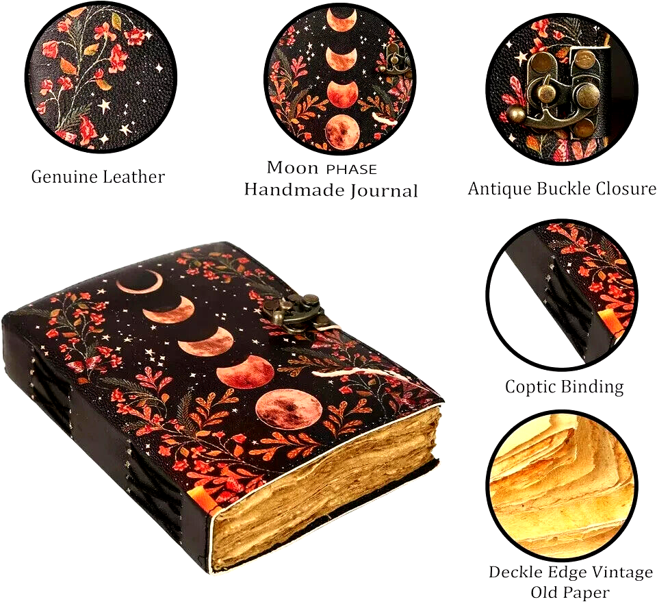 This handmade leather journal is absolutely stunning—the celestial design and deckle edges give it a magical, vintage feel. The quality is top-notch, with soft, durable leather that ages beautifully. Perfect for writing spells, journaling, or sketching, it’s a treasure to hold and use. Every page feels special, making it a joy to capture thoughts and dreams. Highly recommend for anyone who loves unique, heirloom-quality notebooks!