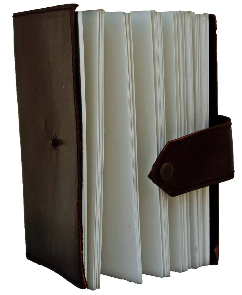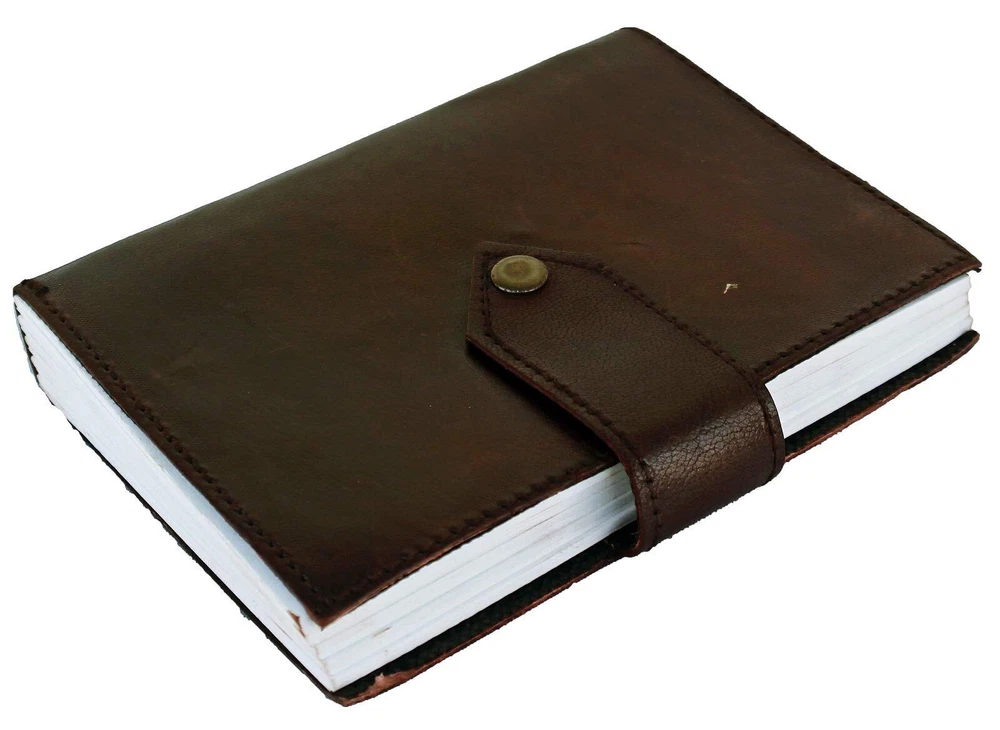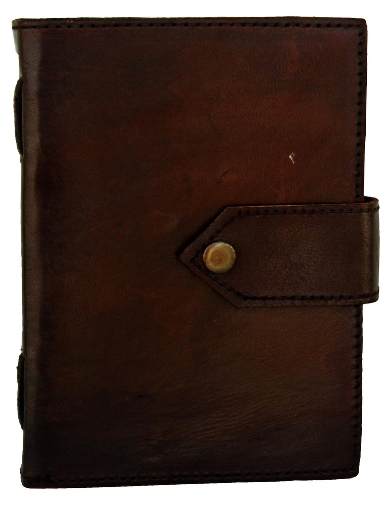 Bound handmade fiber paper with Genuine Leather covers was once the standard for recording historical events, and even religious followings. This diary is handmade one at a time just like the diaries were in the Medieval Renaissance period to accurately reflect the same quality and level of detail as ancient times. This book contains 110 to 120 thick, soft pages of authentic handmade fiber parch paper and Recycled materials that hold any type of ink and perfect for classic calligraphy and scripting. Whether you want to write poetry or spill your heart and soul out onto the handmade fiber pages, you can personalize this handmade book to your will. The front cover of this handmade leather diary depicts a simple plain style with stitched leather edge. The cover is 100% genuine leather and are handmade from top to bottom. Securing your personal thoughts is easy to achieve since this leather diary comes with an attached leather strap that doubles as a bookmark FEATURES: 5 inches wide, 7 inches tall and about 1.25 inches thick with acid-free Plain Cream recycled cotton pages suitable for use with any type of pen for all everyday writing tasks, Front face also covers with a quality Touch Button that keeps it secure. Perfectly suited for accepting charcoal, pen, pencil, or even paint, Non bleeding & eco friendly papers. PREMIUM QUALITY: Genuine Durable leather cover made by experienced craftsman with strong stiches to ensure long term utility. Excellent quality, acid-free paper, made of recycled biomass, quality leather looks antique and rustic, soft, smooth, but no smells. The classic elegant design style of this notebook memo never goes out of fashion, which makes it useful for a long time. MULTIPLE FUNCTIONS: Each journal is carefully hand bound enabling you to pour your thoughts easily This leather notebook is a great and classy way to record your life. Ideal for any budding Writer Artist or anyone simply wanting to do some high-quality note taking, Best alternative for Creative writing, Artist Sketchbooks, Travelling Notes, Business Executive, Hunting Logbook, Poetry Work, Journalists, Food Planner and Bible Journaling Cartoonists, Poets, Designers, Graphic Artists etc. VINTAGE CHARISMA: Beautifully handcrafted Soft & Supple Dark Brown Genuine Leather is being made from 100% natural leather, our journals may vary in look & shade, producing a unique item, no two are quite the same giving it a antique classy vintage rustic look - a special keepsake for your thoughts, plans & ideas in this Hardcover executive notebook PERFECT GIFT: A must have for all traveller and an ideal gift for your family and friends, or even yourself, this distinctive refillable journal will help words flow freely. A gift for all occassion graduation, Christmas, Mother's Day, Father's Day, Teachers day, Valentines Day, Halloween, long trips, or other special events for men & women.
