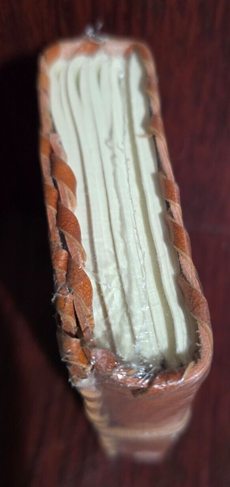 This handmade paper diary is a perfect addition to your collection. The journal is leather bound and has been crafted with care. The cover material is made of high-quality leather that is both durable and stylish. It's a great choice for those who want to keep a physical record of their thoughts and ideas. The diary is perfect for blank diaries and journals, calendars, and planners. It's an ideal choice for office supplies, and it's perfect for use in business and industrial settings. The diary is not just functional, it's also a great accessory that can complement any outfit. 5" tall x 3.5" wide.
