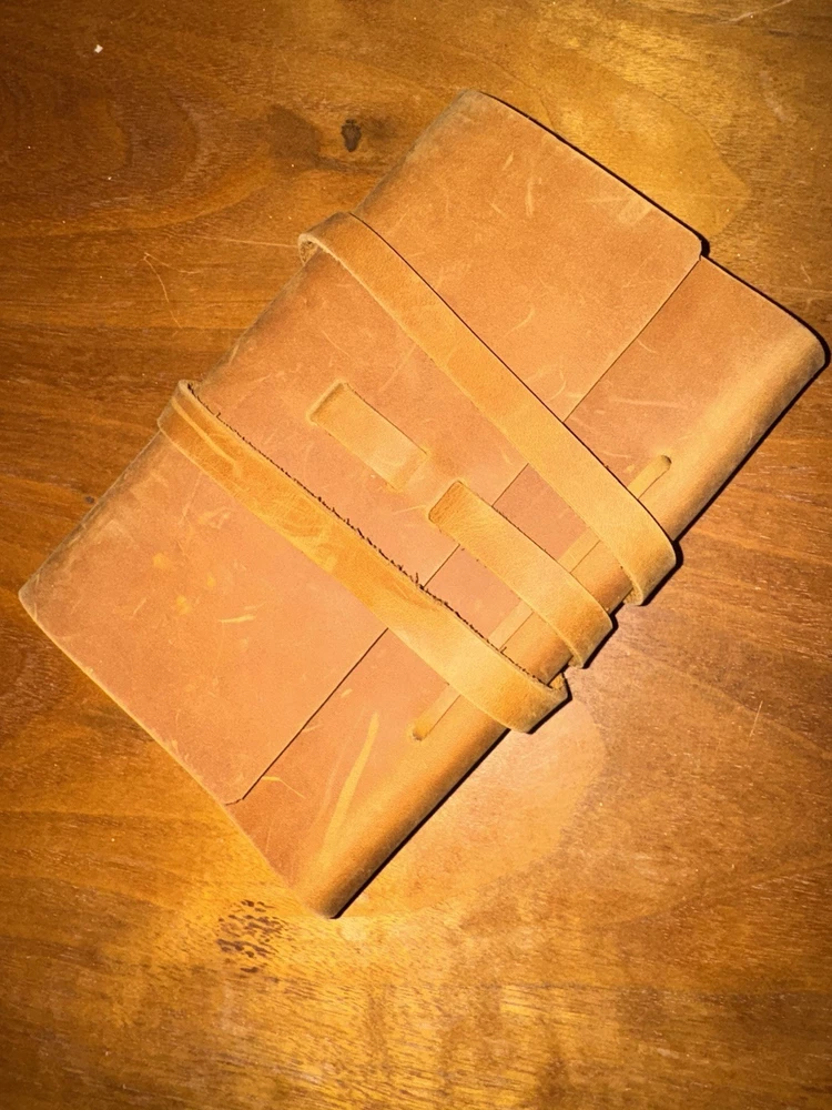 Absolutely love this journal cover! The distressed leather gives it such a unique, vintage feel—like it has its own story. Perfect size for tossing in my bag, and the craftsmanship is so detailed. Super soft yet sturdy. Plus, the seller’s return policy makes buying worry-free. Just awesome quality all around!