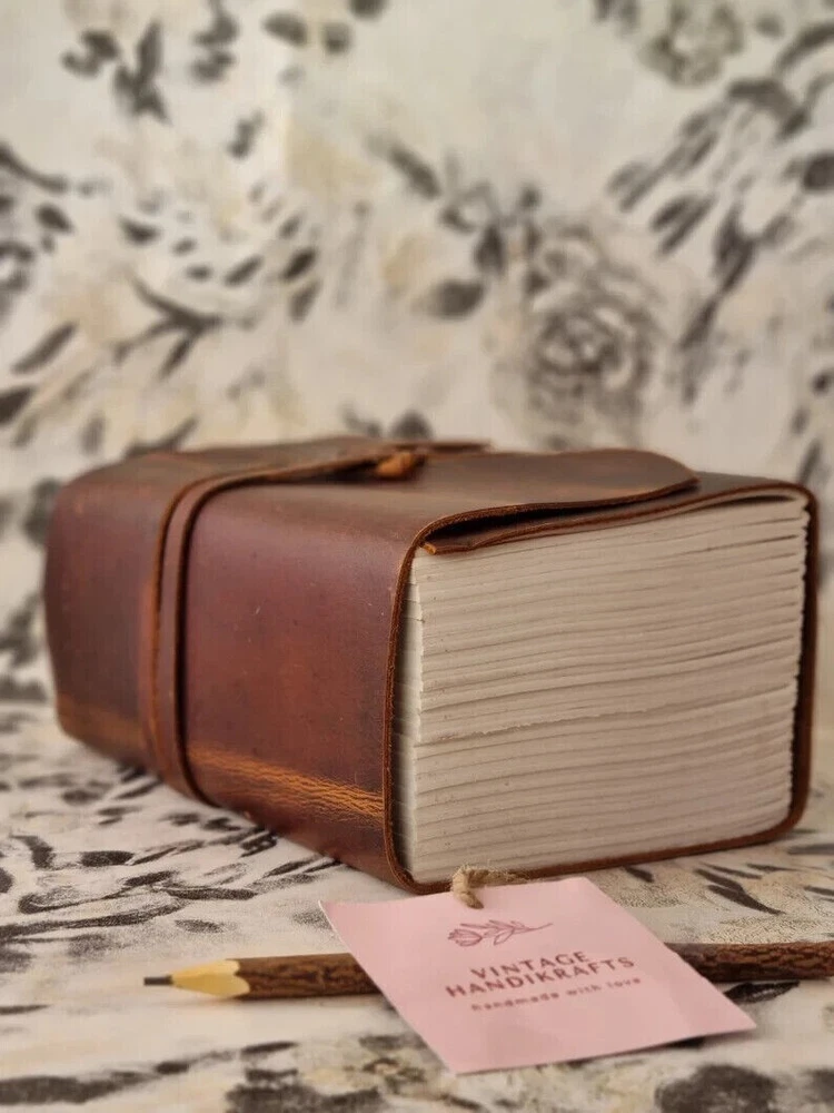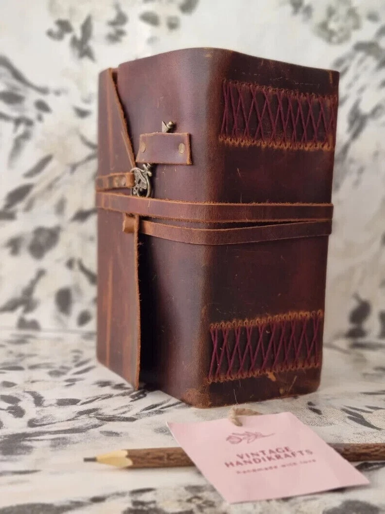 ~ A Beautiful Rustic Leather Journal diary with lock of the Highest Quality SIZE : 10(H) x 7(L) x 1(W) inches. PAPER - 600 Pages counting both side. Entirely handcrafted by artisans, each leather bound journal is a work of art. * BEAUTIFULLY HANDCRAFTED High-quality top-grain 100% leather that looks, smells and feels beautiful. Naturally tanned leather will age with character - or simply rub away your markings if you choose. A lifelong companion on your journeys. * ANTIQUE Vintage Paper - vintage BLANK recycled cotton that is acid-free, chemical-free and tree-free. This gorgeous, thick antiqued paper prevents bleed-through and feels amazing. Environmentally sensitive and fountain pen friendly. * Use Any Kind Of Pen - Sketch, Doodle, Write on your journal notebook with a Calligraphy Pen Fountain Pen, Brush Pen, Ball Pen, Acrylic Colors, Watercolor and many more. * STYLISHLY ANCIENT - Antique cotton paper combined with the beauty of distressed leather, hand stitched by Artisans, creates a keepsake you will cherish forever. Makes a great gift for the men, women, and wiccans in your life! * OLD SCHOOL VINTAGE FEEL: Let this journal take you back in time to when things were just so simple. Let your art flow under the shadow of our classic cover or inscribe poetry on our smooth creamy pages. The leather strap will keep your diary tightly closed when not in use or could be used as a fancy bookmark. The notebook makes a perfect gift or present for anniversary, graduation, Birthday and will surely excite anyone. * Sturdy Binding, Leather Wraparound And Key - Sturdy hand stitched binding to make sure that no paper comes out loose. The leather wraparound with a cute key that slips in will make sure that the papers inside the journal are safe and secure. Mothers Day Gifts, Personalized Gift For Mom, Mama Gift From Daughter, Mom Birthday Gift, New Mom Gift, Step Mom Gift
