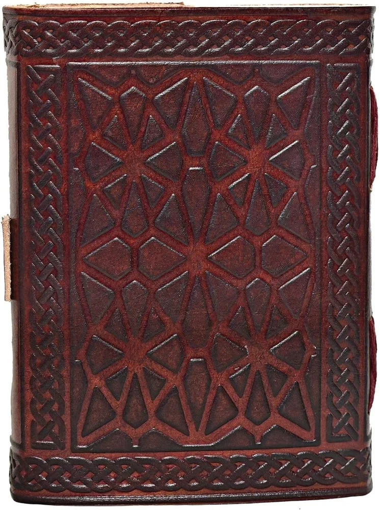 About this item QUALITY MEDIEVAL HANDMADE VINTAGE PAPER - Ancient looking rustic cotton paper combined with the beauty of distressed leather, hand-stitched by Artisans, creates a keepsake you will cherish forever. Makes a great gift for the men, women, and Wiccans in your life! 3 MOON EMBOSS DESIGN - Perfectly embossed with the 3 Moon designs, this journal makes a thoughtful gift to anyone of different cultures. The moon symbolizes firmness, strength, and power while the moon represents calmness, beauty, and nurturing. SIZE IS 7 INCH BY 5 INCH Unlined DECKLE EDE paper: 240 pages of thick, natural 115GSM kraft paper. Perfect for use with many pen types. Thick paper prevents bleed through. Pages are Unlined with 5.5mm spacing. Note: Deckle Edge page count is 240 pages, 120 sheets Tell your story: We designed this classic leather journal as a time capsule for your thoughts. Capture your important memories, accomplishments (and failures), life-changing moments and evolving dreams as a keepsake to reflect upon in years to come The Journal Is fantastic Made With leather use for leather journal WRITING JOURNAL BLANK JOURNAL FOR MEN AND WOMEN 3 Moon Blue Lapiz Embossed Vintage Leather Journal | 240 Pages of Antique Handmade Deckle Edge Vintage Paper QUALITY MEDIEVAL HANDMADE VINTAGE PAPER - Ancient looking rustic cotton paper combined with the beauty of distressed leather, hand-stitched by Artisans, creates a keepsake you will cherish forever. Makes a great gift for the men, women, and Wiccans in your life! 3 MOON EMBOSS DESIGN - Perfectly embossed with the 3 Moon designs, this journal makes a thoughtful gift to anyone of different cultures. The moon symbolizes firmness, strength, and power while the moon represents calmness, beauty, and nurturing. SIZE IS 7 INCH BY 5 INCH Unlined DECKLE EDE paper: 240 pages of thick, natural 115GSM kraft paper. Perfect for use with many pen types. Thick paper prevents bleed through. Pages are Unlined with 5.5mm spacing. Note: Deckle Edge page count is 240 pages, 120 sheets Tell your story: We designed this classic leather journal as a time capsule for your thoughts. Capture your important memories, accomplishments (and failures), life-changing moments and evolving dreams as a keepsake to reflect upon in years to come The Journal Is fantastic Made With leather use for leather journal WRITING JOURNAL BLANK JOURNAL FOR MEN AND WOMEN Key Features Size Perfect Size to carry in Hands. Dimension – SIZE IS 7" X 5". Total Pages 240 pages Approx. (counting both sides) Pages And Paper It has 240 pages. Unlined Paper. Each journal is carefully hand bound with 100% acid-free plain unruled cream tone recycled cotton pages suitable for use with any type of pen for all everyday writing tasks. Lock And Design Perfectly embossed with the 3 Moon designs, this journal makes a thoughtful gift to anyone of different cultures. The moon symbolizes firmness, strength, and power while the moon represents calmness, beauty, and nurturing. Stitching Handmade Side Stitching with durability and handcrafted by artisans of Rajasthan India. Leather Bound journal with deckle edge paper for Men And Women Diary Cuero is excited to bring you a wide range of Leather Journals, Bags and Accessories. At Cuero we believe that quality makes a Brand. We choose from the finest quality of raw materials available. High Quality Genuine Leather The superior leather cover is soft and supple, with a naturally inviting texture and this journal will last a lifetime.Each journal is carefully hand bound with 100% acid-free plain unruled cream tone recycled cotton pages suitable for use with any type of pen for all everyday writing tasks. It is hand made in India utilizing traditional craftsmanship and techniques which have been passed from generation to generation. Paper inside the journal is handmade from pure off white cotton. Sturdy Leather Binding Technique with a Key will make sure that the pages never fall off. Total Pages 240 pages Approx. (counting both sides) Paper Quality - With deckle edge paper, it feels good to write words. You can write with pens, pencils, markers or crayon drawings, and you can bring it with you on a trip or conference. No more worries about ink messing up the pages either. The thick pages are ideal for pen, pencil, crayons, and even charcoal! Get Yourself the Most Valuable Travel Companion Today – Never Have to Travel Alone Again.