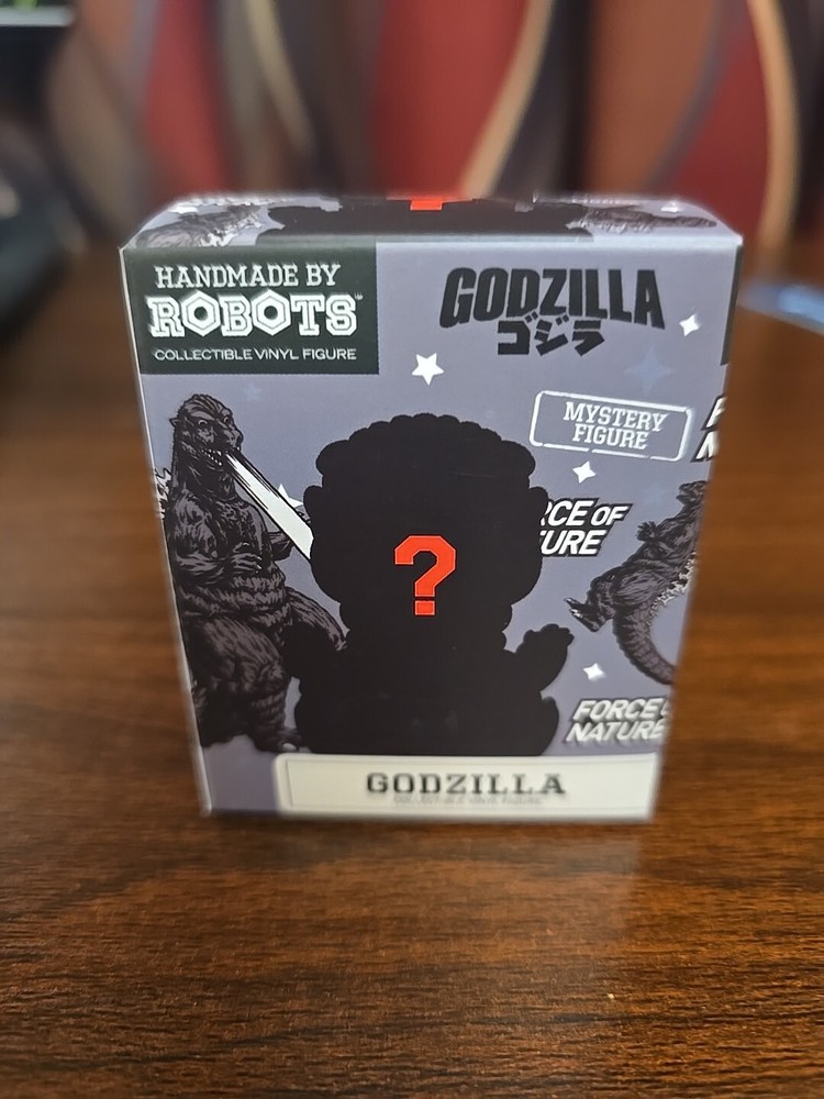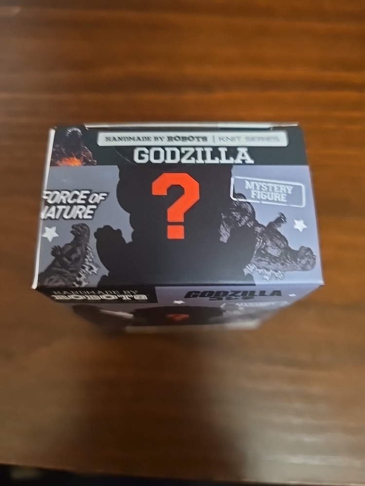 This is a Godzilla knit blind box figure mini, created by Handmade by Robots in 2024. The product features a Godzilla theme and is made in China. 4 different figures....