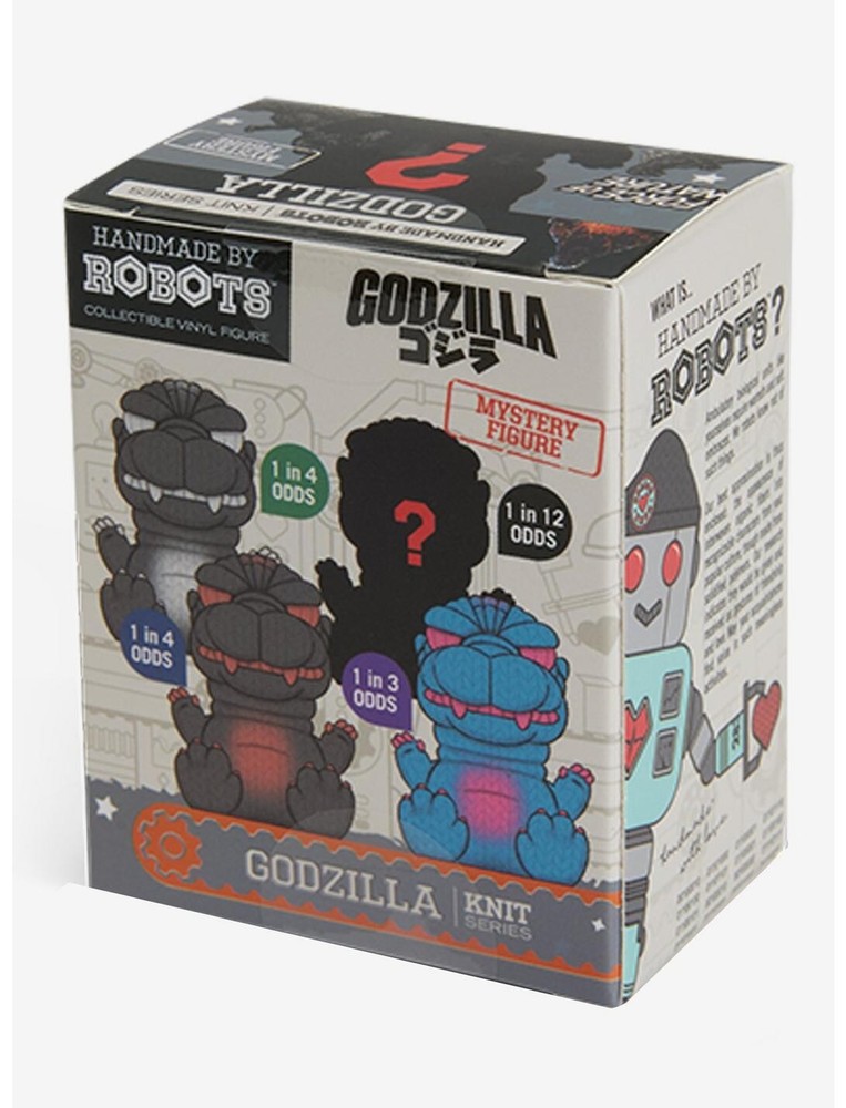 Handmade by Robots Godzilla Knit Blind Box Figure One of these Godzilla figures is roaring onto your shelf! Each one features the monster in a knit design in a different color, including a mystery figure. With four to collect, which one will you get? It's a surprise! Sorry, no choice or returns. All sales final on this item. Plastic Contains one randomly selected figure Imported