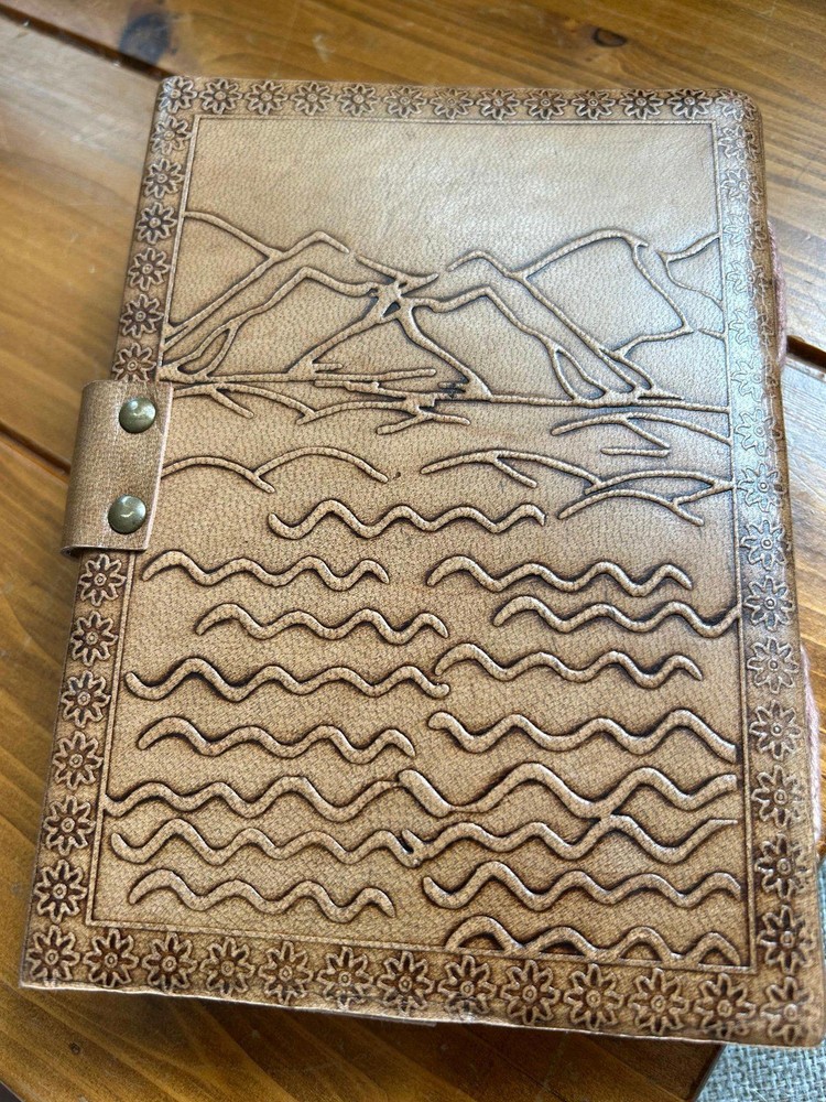 5x7” turtle embossed leather bound journal only missing 2 pages at the front (shown in last picture) otherwise beautiful condition....