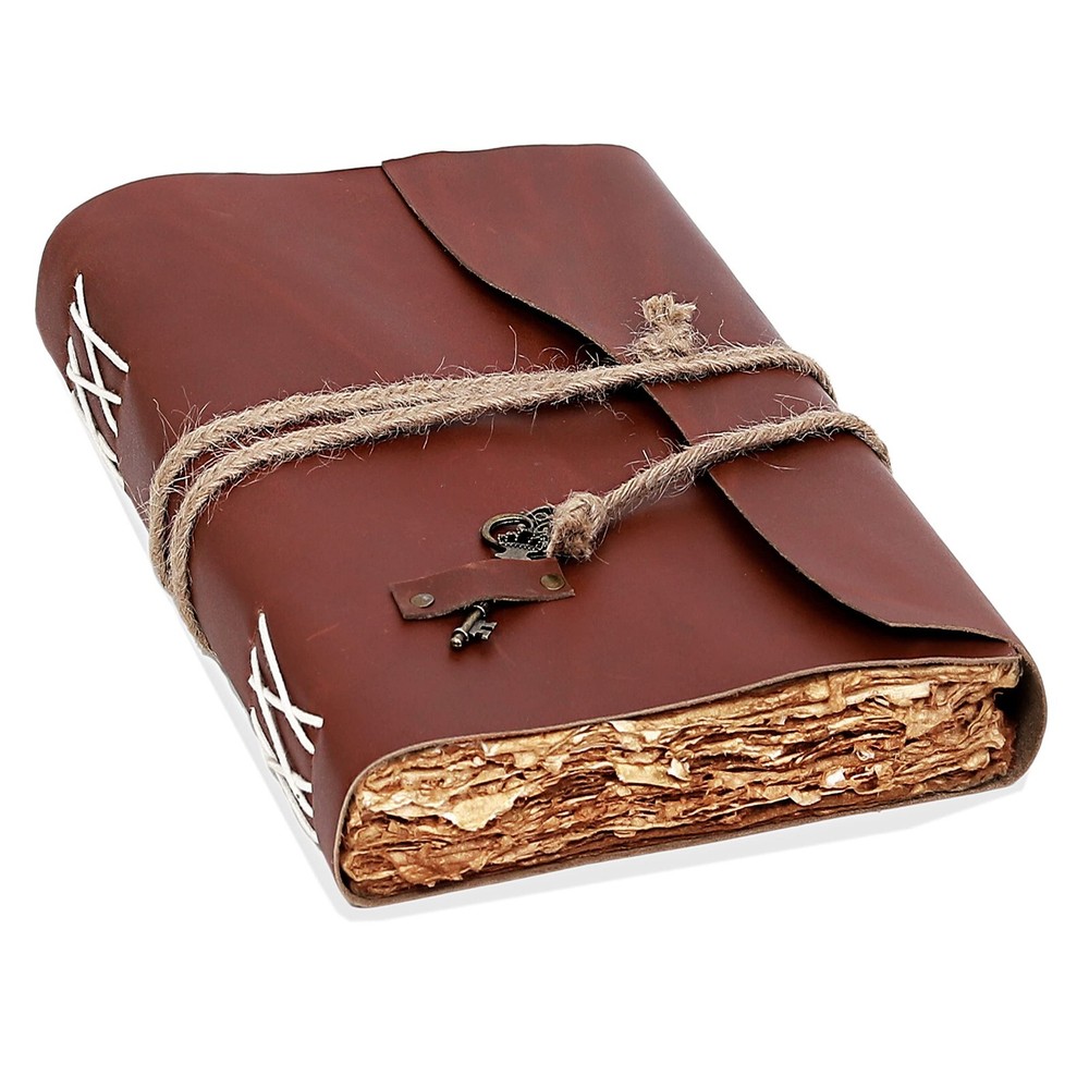 *Product details Vintage leather Journal Lock Closure book of Shadows Grimoire Journal Travel Writing Notebook sketchbook deckled edge paper Birthday gifts Handmade journal, blank books, personalized leather, vintage diary, genuine leather journal, anniversary gift, gifts for her, personalized gifts, gifts for him, leather journal, valentines gifts, a5 journal Customized size Size - 7x5 inches (200 on both sides) Size - 8x6 inches (200 on both sides) Paper - 100 pages (200 on both sides) Paper - Pure Cotton Hand Made Plain Paper (Unline) Leather Colour: Brown and dark brown Leather - Full Grain Leather (Best Quality) Soft and durable natural handmade leather Quality Metal Hardware (Brass metal) Ideal gift for writers, poets, artists etc. Tied with traditional sewing methods *Materials: Full Grain Leather, Antique Brass Hardware, Handmade Sheets, Natural Leather, Handmade Paper, Unlined Paper, Leather Journal, Leather Diary, Leather Unlined Diary, Blank Paper Diary, Leather Cover, Notebook, Leather Sketchbook Artist Sketchbook, Photo Album, Traveling Notes, Business Executive, Logbook, Poetry Work, Journalist, Food Planner, Instagram Scrapbook, Bible Journalism, Documenting Your Spiritual Journey, A Dream Journal, A Book of Shadows, Grimoire, Sketchbook, Idea Book for Ideal , prayer book, gratitude journal, a daily journal or anything else you can think of. Luxury, Handmade, Fair Trade and Eco-Friendly Capture and share your thoughts before you walk away Handy for handwriting, drawing or sketching and compact to carry in your bag hpprox 100 sheets/200 pages of online paper Hand crafted non-bleeding paper made from recycled cotton that is chemical free Due to the Coptic binding process, this magazine is not refillable - it is unique in its kind! Hand-stitched Coptic leather binding secures pages firmly Suitable for all pens and pencils easy to care for Wipe slightly dry with a tissue, or rub in circular motions to reduce scratches and dust Shipping&Delivery Free worldwide shipping on all products. USP Inspired by distressed vintage style Handcrafted by Me and Skilled Village Artisans Fair trade factory price (no middleman) GUARANTEED HIGH QUALITY SELECTED LEATHER y friendly (no chemicals used) Handmade recycled cotton pit paper Welcome to the world of Leather Diary